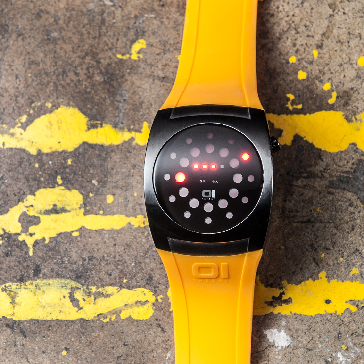 The Lightmare is a sleek modern watch with a new take on the digital display. A handsome black stainless steel case and high contrast yellow rubber wrist strap complete this techno chic digital timepiece. Add a pop of color to your business casual wardrobe.