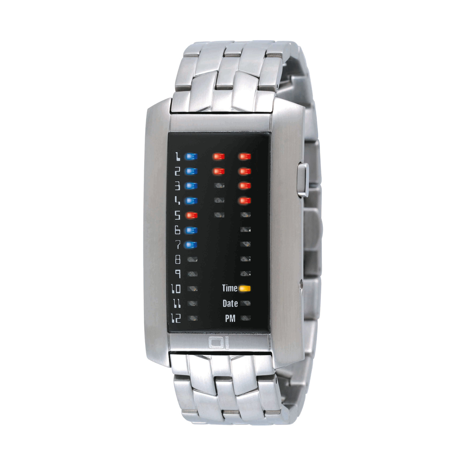 The Ibiza Ride watch is a hyper futuristic timepiece with a sleek rectangular stainless steel case and a colorful LED face that displays binary time. This modern watch is more than just a showpiece, though. It's water resistant up to 90 feet and comes with a 3 year warranty.