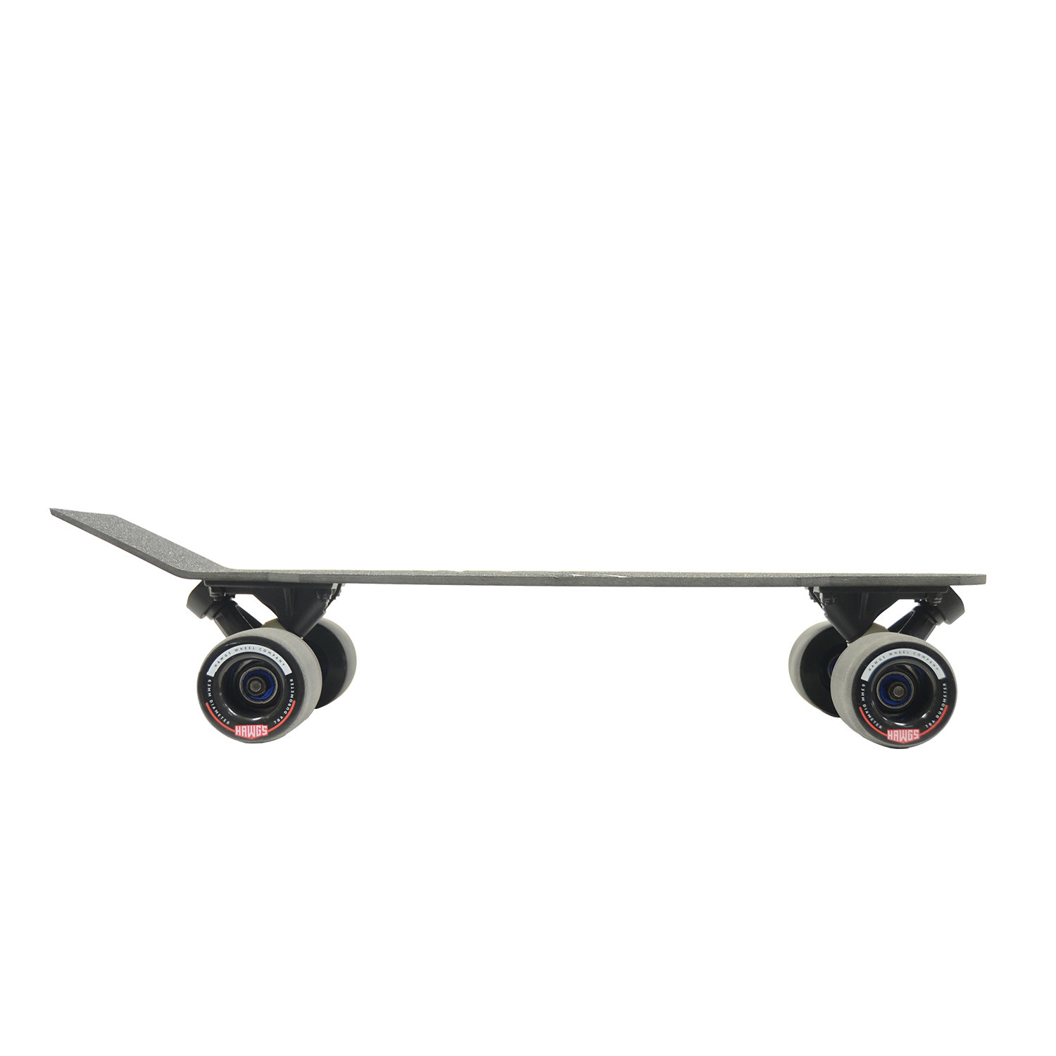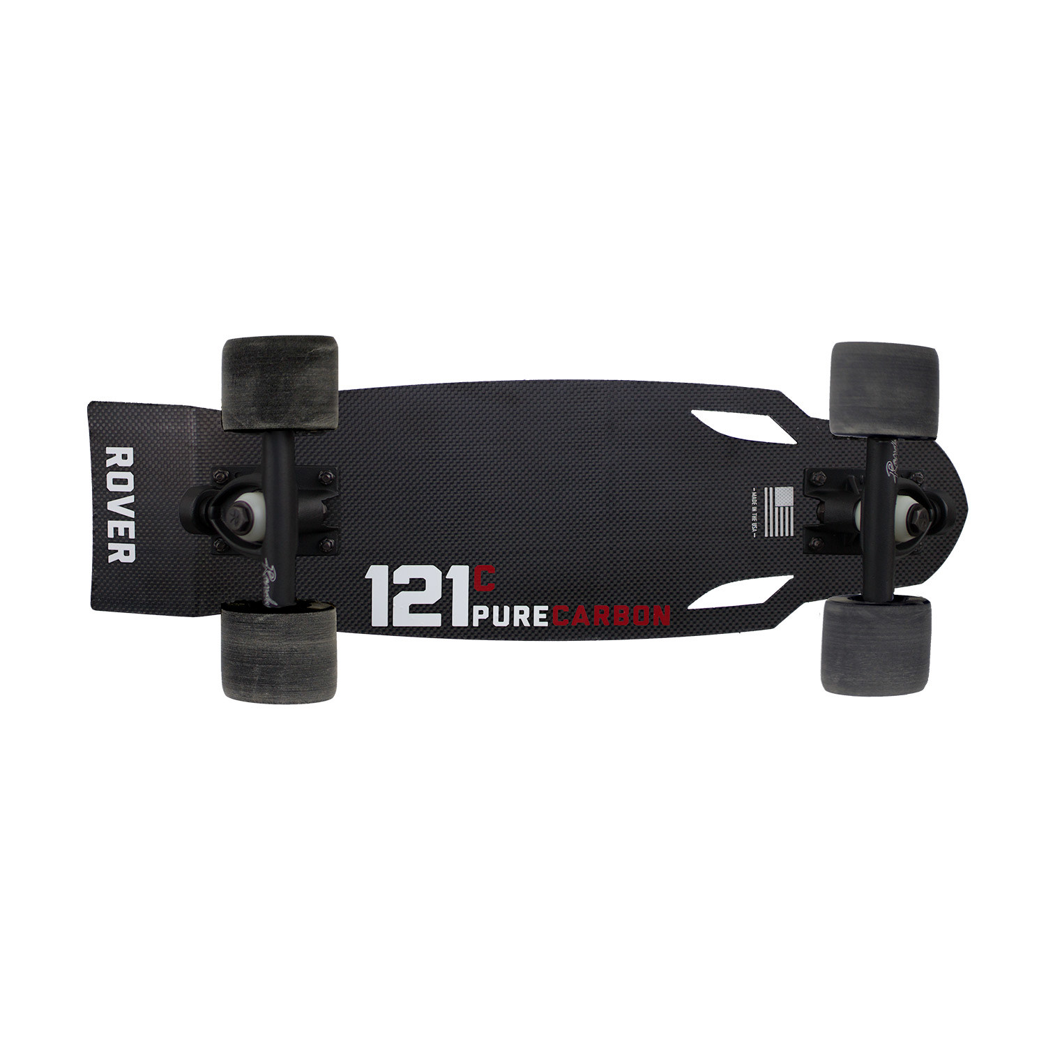 The Rover is an ultra-portable, 22" long skateboard with a 100% pure carbon fiber deck that makes it light and strong. Carbon fiber is known for it's insane durability and flexibility, woven of thin, strong fibers, that make it virtually indestructible, but also unbelievably lightweight. It's even built with Randle 125mm trucks, Oust MOC 5 bearings, and Hawgs Fatty Hawgs wheels, for insane quality and function that you can see and feel before you even ride.
