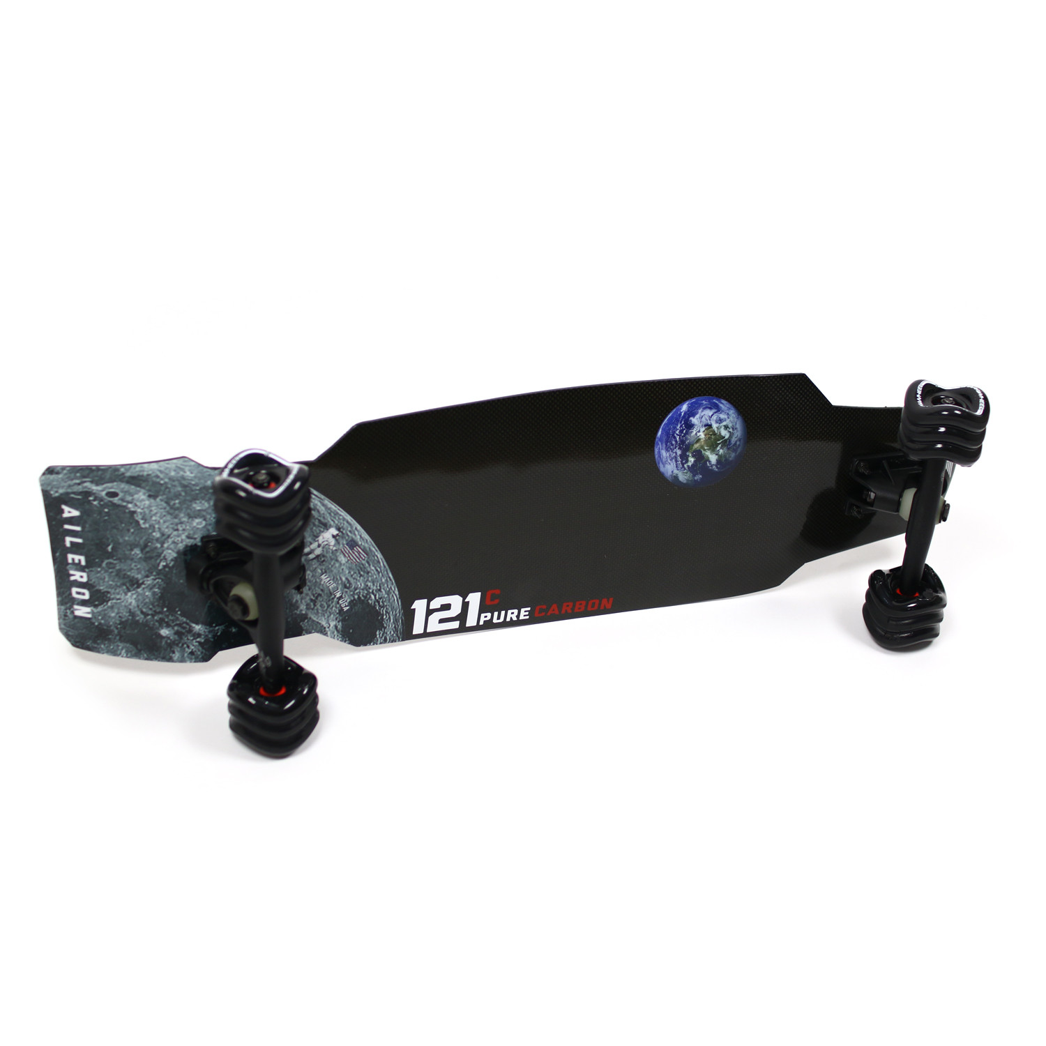 The Aileron is crafted with the highest quality areospace carbon fiber, upcycled from the production lines of contemporary rockets. Equipped with a space inspired graphic, Randal trucks, Oust bearings, and much like the aileron that drives the turning of an airplane, this skateboard is made for smooth turns and a fun cruise. It's something totally out of this world.