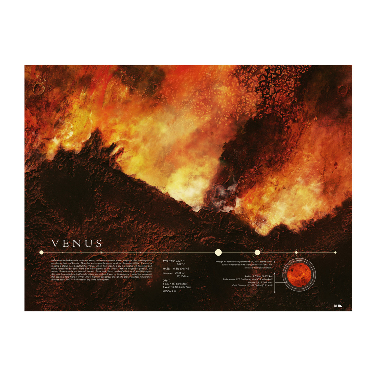 Before anyone had seen the surface of Venus, ancient astronomers named the planet after the dangerous goddess of love and beauty. Now that we’ve seen the planet up close, the name still fits. It’s hard to imagine a planet more beautiful than Venus, with its thick clouds, a sky that ripples with lightning, and active volcanoes that cover more than three-quarters of the surface. Yet like the jealous goddess, the second planet from the sun demands respect. Those thick clouds, made of sulfuric acid, would burn your skin, and the atmosphere itself would poison you and crush you, as it has quickly crushed the spacecraft that began to land there in 1970. And if that isn’t dangerous enough, the planet’s surface temperature reaches about 900˚F—the hottest of any in the solar system.