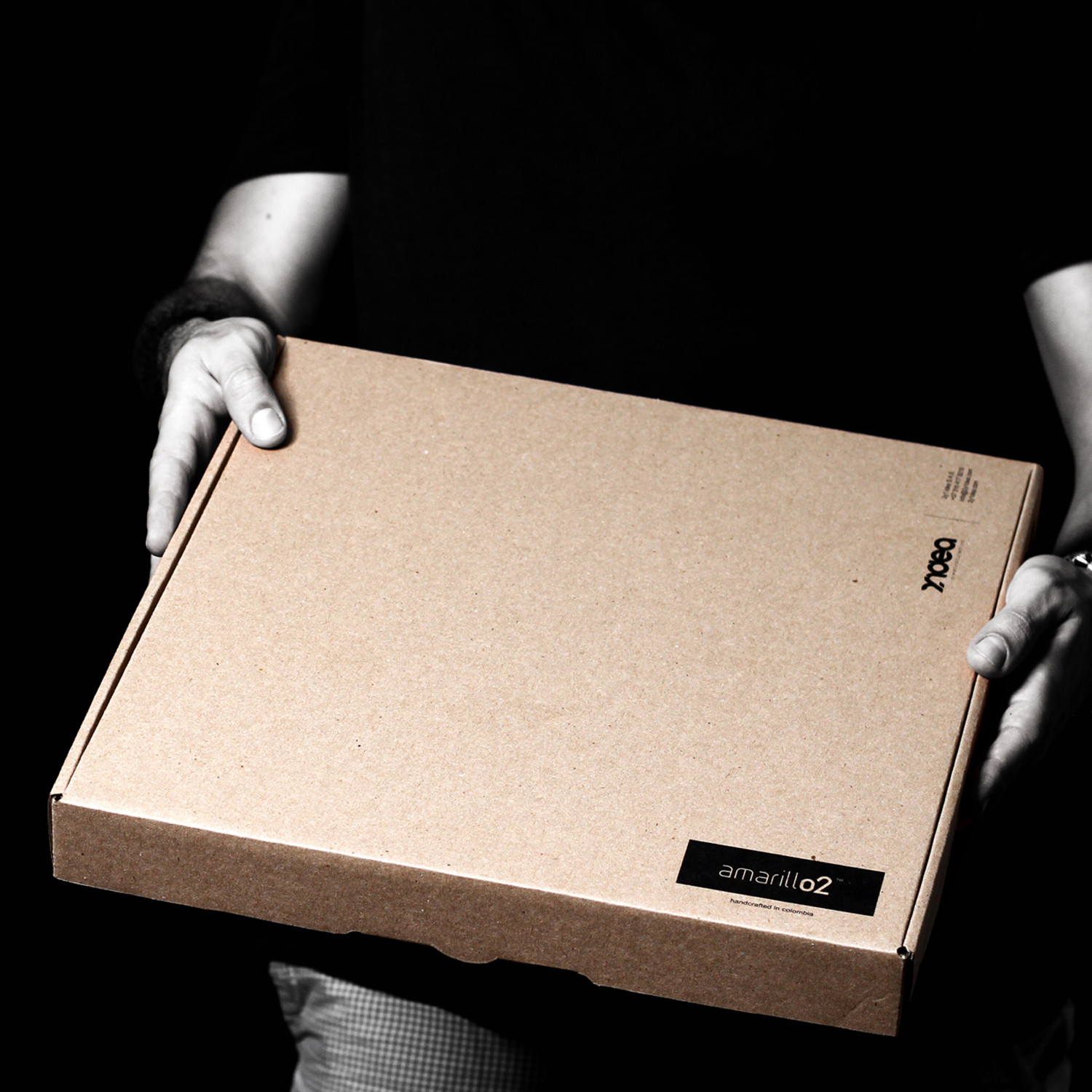 Pensamientos 18 is "Water", a design that depicts two droplets of water and an ever expanding ripple that continues around their forms. Blue hands break up the concentric rings designed by 2y1dea. It's a harmonious pattern, presented as both minimalistic and intricate. Water is an interesting background for your time-telling purposes. Each amarillo2 clock comes beautifully packaged, making them ideal gifts.