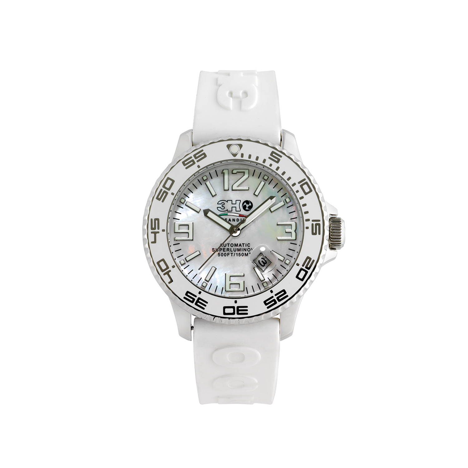 Sporting, sporty and bold, the 3H Italia Steel Watch features an outrageously oversized design sure to get attention. Replete with Superluminova detailing, its 15 ATM water resistance and magnification of the date display make for an incredibly functional luxury piece.