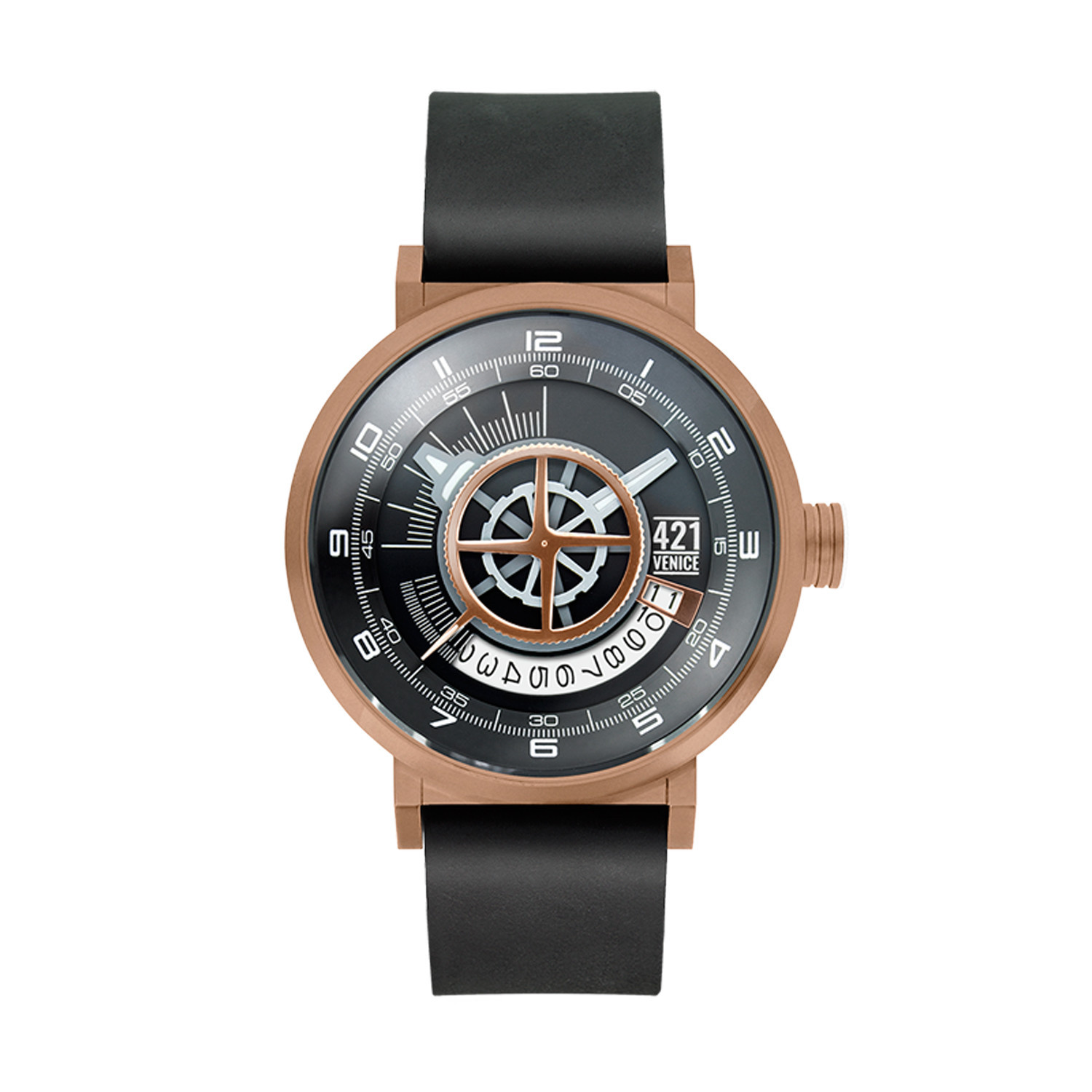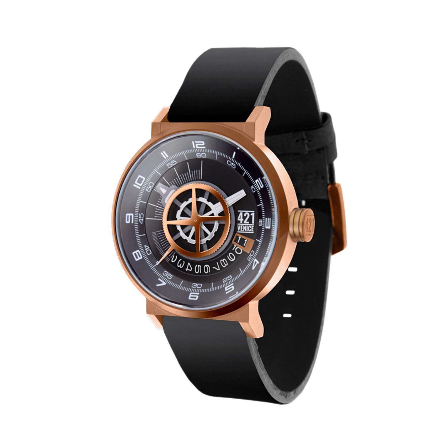 Venice is known across the globe as the "city on the water", slowly sinking, and surrounded by ancient buildings and some of the world's most amazing views. The founders of 421 Venice love the history of their hometown, but are still looking to the future. Which is why they created a collection of watches that deliberately rebuke the perpetually sought-after "vintage look", but still preserve the colors of the region - literally. The rose gold of the famous statues, the bronze of the Byzantine mosaics, the blue of the lagoon, the silver of the bridges, or the black of the night can be found in each timepiece, which is named for an area of Venice.
