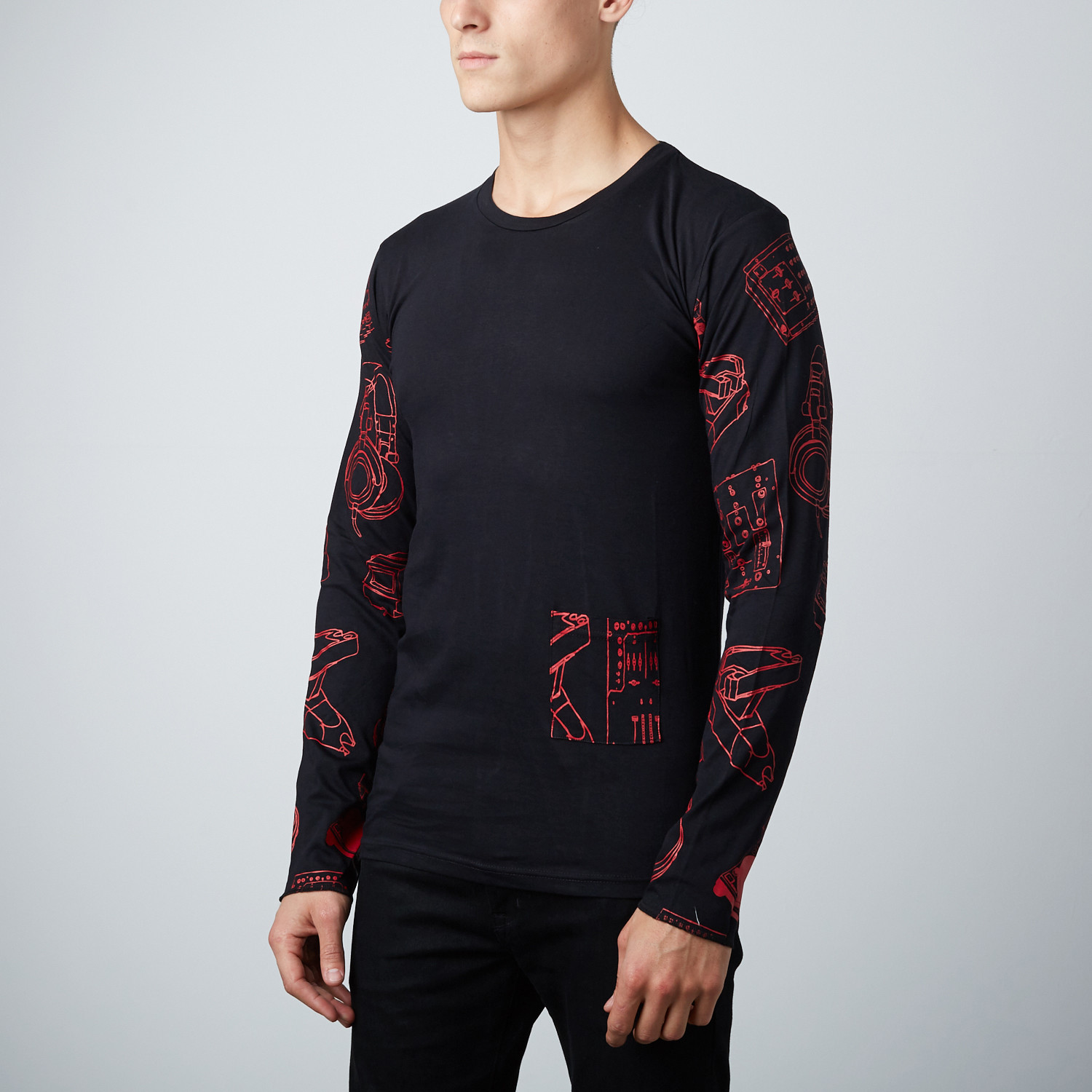 DJ Long Sleeve Crew Neck // Black + Red
