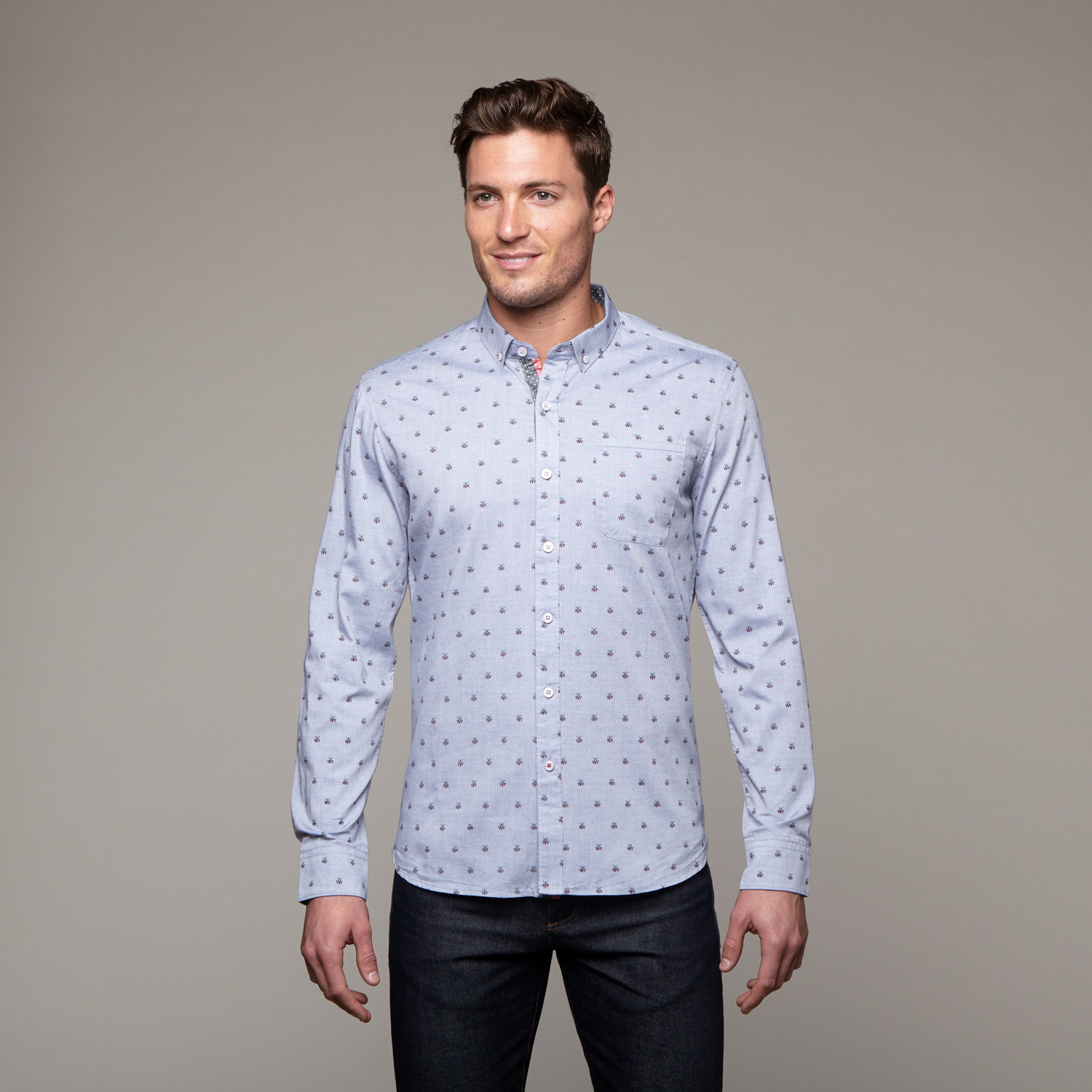 — Two-Tone Bee Print Oxford