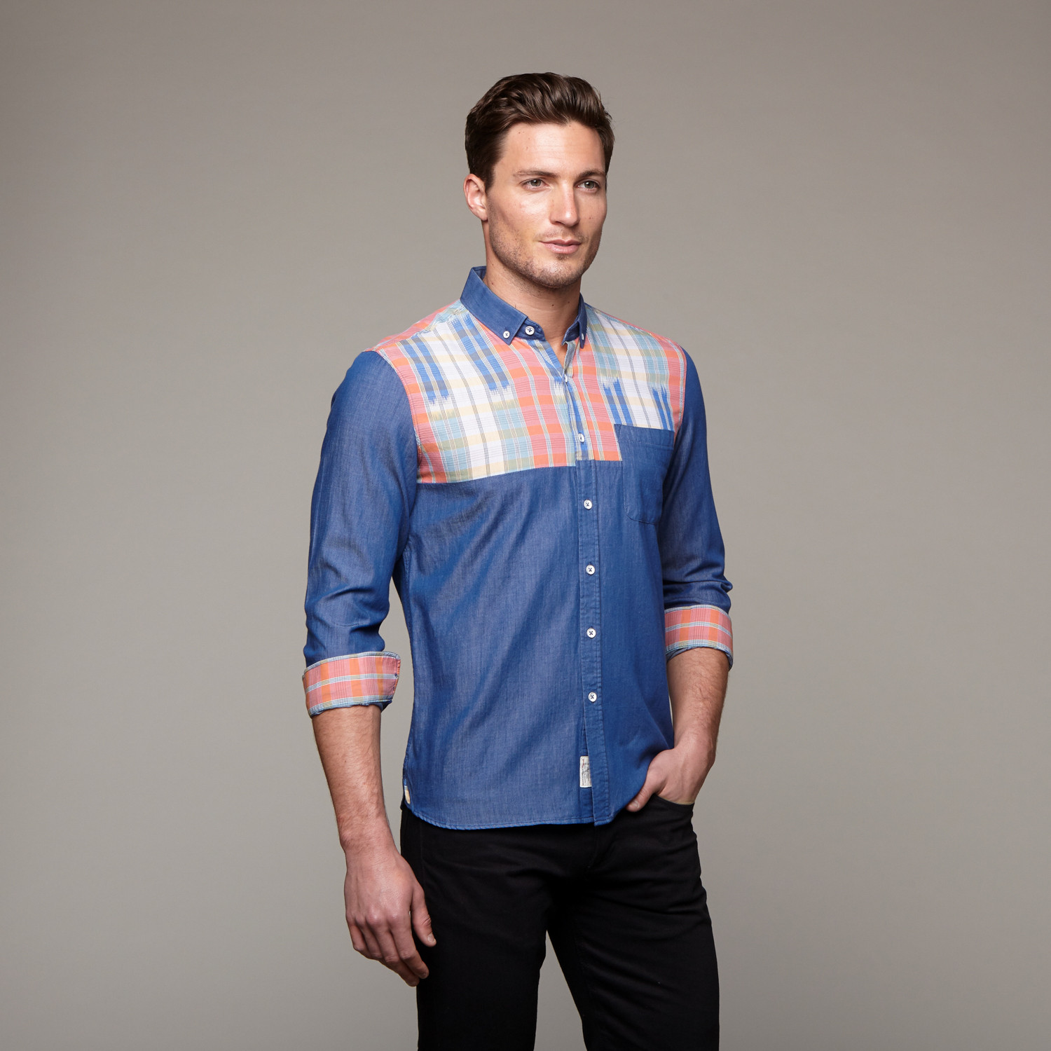 — Contrast Western Plaid Paneling on Yoke