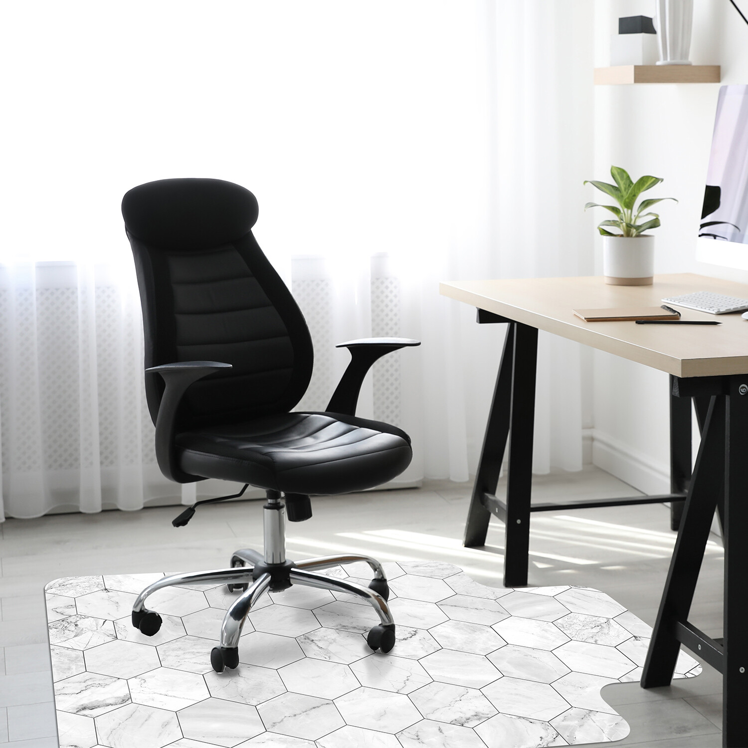 Whether you're working from home or use your home office as a command center for family life, adding a little ambiance to create a beautifully cohesive workspace sure would be nice. These beautifully designed vinyl mat accessories from A&A Story offer you the upgrade you need to make your office space feel inviting, organized, and comfortable. From mouse pad to chair pad, this collection is all about durable decor that shines. Each low profile vinyl piece is easy to clean and incredibly durable, ensuring that your office glow-up lasts for years to come.