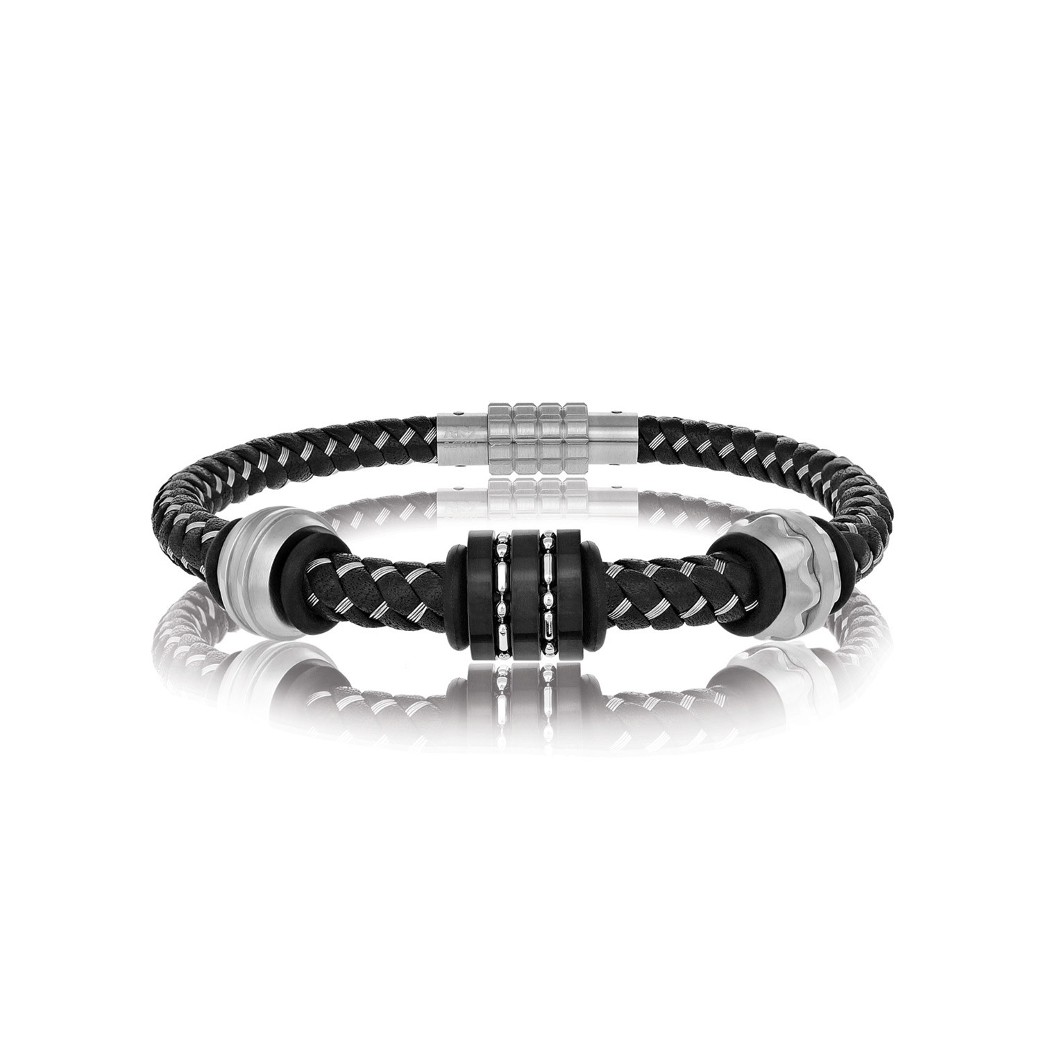 Black Leather Bracelet + Steel Wires
