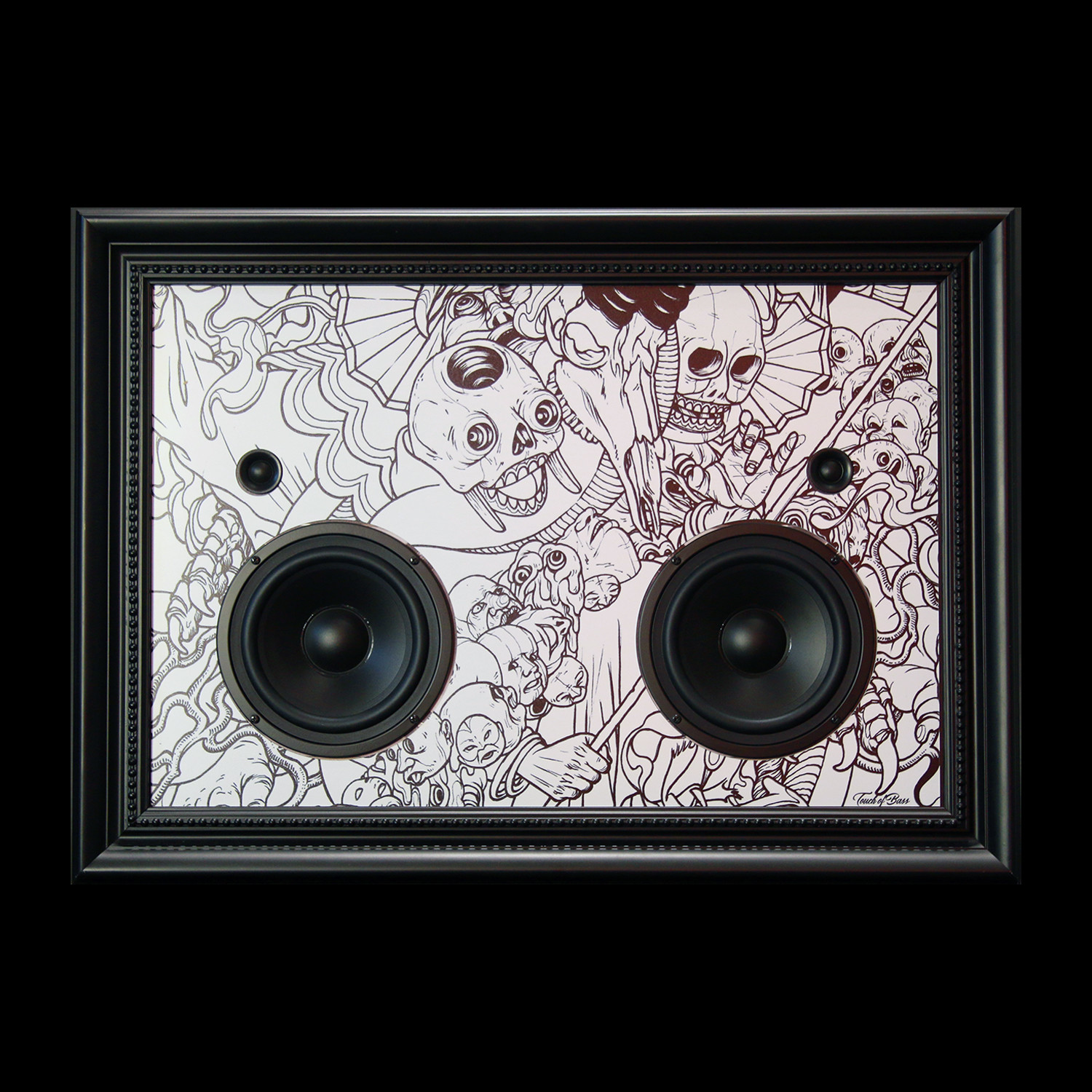 Touch of Bass Skins allow you to expand your audio art collection without having to hang new hardware each time. These high quality art prints are produced on a high grade rigid vinyl film that snaps in with no modifications, just pressure sensitive reusable adhesive tabs. All prints are unique and allow you to change your look like you change a track in your mix, easily and often.