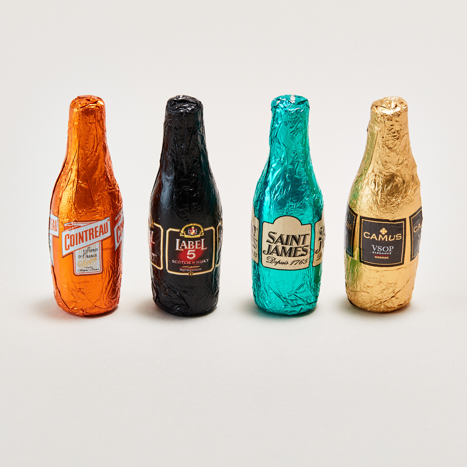 Celebrate the holidays the proper way with the Reglette Selection Liqueurs set. This selection includes dark chocolates filled with Cointreau®, Label 5® Whisky, Saint James® Rum, and Camus® Cognac.