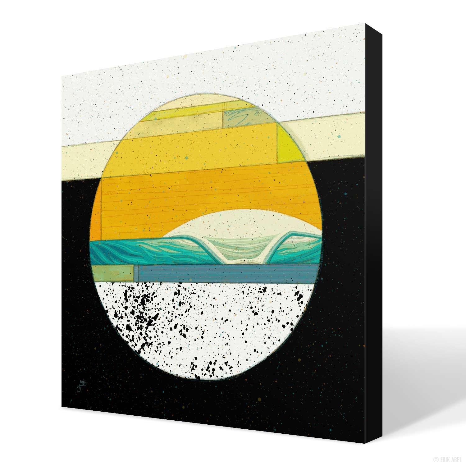 Bold colors, geometric patterns, and botanical profiles abound in this collection of canvas prints from Erik Abel. Inspired by a love of the ocean, surfing, and travel, Abel’s work articulates the spirit of the water and awe of nature. His graphic imagery unfolds along with the story of his paintings. Accents peek through, unexpectedly revealing layers of color while loose strokes of colored pencil create detail and dimension. Abel now lives and works in Southern Oregon. His original pieces have been featured in galleries across the country and abroad while his commercial work has attracted clients including Patagonia, Reef, REI and Billabong.