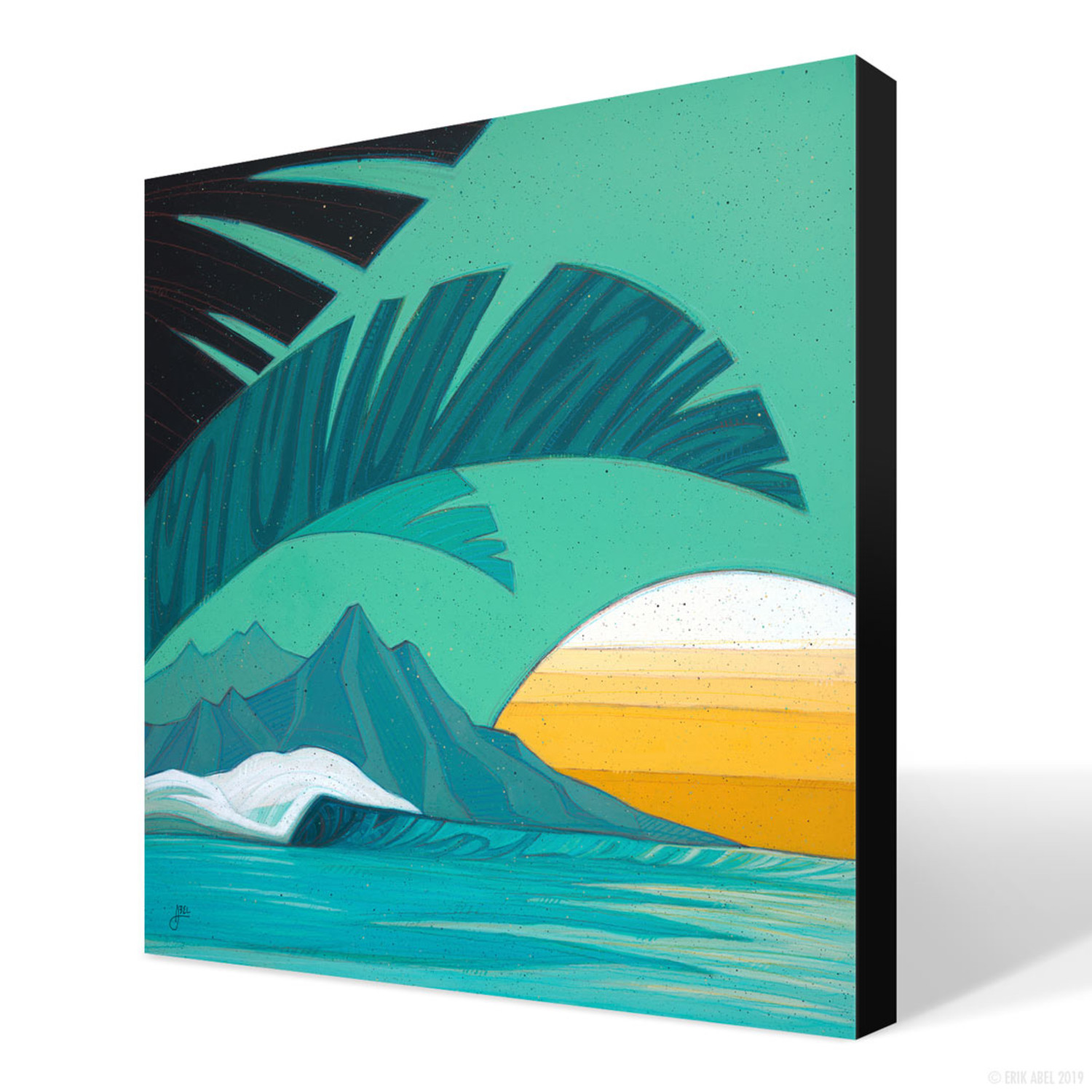 Bold colors, geometric patterns, and botanical profiles abound in this collection of canvas prints from Erik Abel. Inspired by a love of the ocean, surfing, and travel, Abel’s work articulates the spirit of the water and awe of nature. His graphic imagery unfolds along with the story of his paintings. Accents peek through, unexpectedly revealing layers of color while loose strokes of colored pencil create detail and dimension. Abel now lives and works in Southern Oregon. His original pieces have been featured in galleries across the country and abroad while his commercial work has attracted clients including Patagonia, Reef, REI and Billabong.