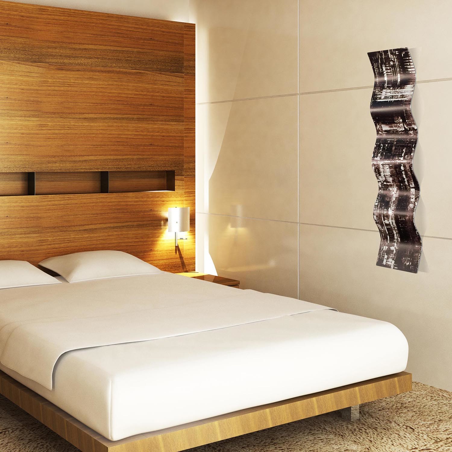Aporia Black Wave is a contemporary style wall sculpture, formed in soothing waves and crafted from high-grade, rust-proof aluminum for a lightweight body and indoor/outdoor versatility. This flowing accent piece ripples like a ribbon in motion, and features the brilliant work of artist Mendo Vasilevski applied directly to the metallic surface in crisp hues with an artistic matte finish. It is designed to be a unique, dimensional way of decorating with an eclectic focus. The industrial materials and durable finishes make this wavy metal art a popular choice for everything from upscale hotels to harmonious day spas to modern corporate offices. This curved abstract artwork is a creative addition to any interior style.