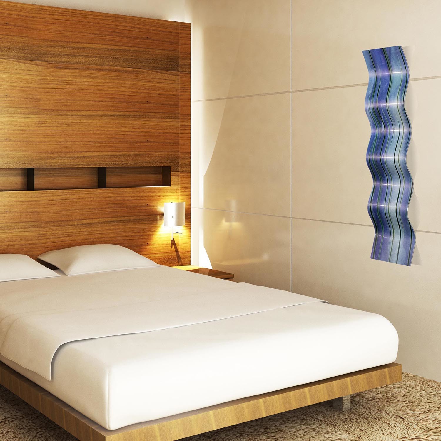 Cold Wave is a contemporary style wall sculpture, formed in soothing waves and crafted from high-grade, rust-proof aluminum for a lightweight body and indoor/outdoor versatility. This flowing accent piece ripples like a ribbon in motion, and features the brilliant work of artist Mendo Vasilevski applied directly to the metallic surface in crisp hues with an artistic matte finish. It is designed to be a unique, dimensional way of decorating with an eclectic focus. The industrial materials and durable finishes make this wavy metal art a popular choice for everything from upscale hotels to harmonious day spas to modern corporate offices. This curved abstract artwork is a creative addition to any interior style.