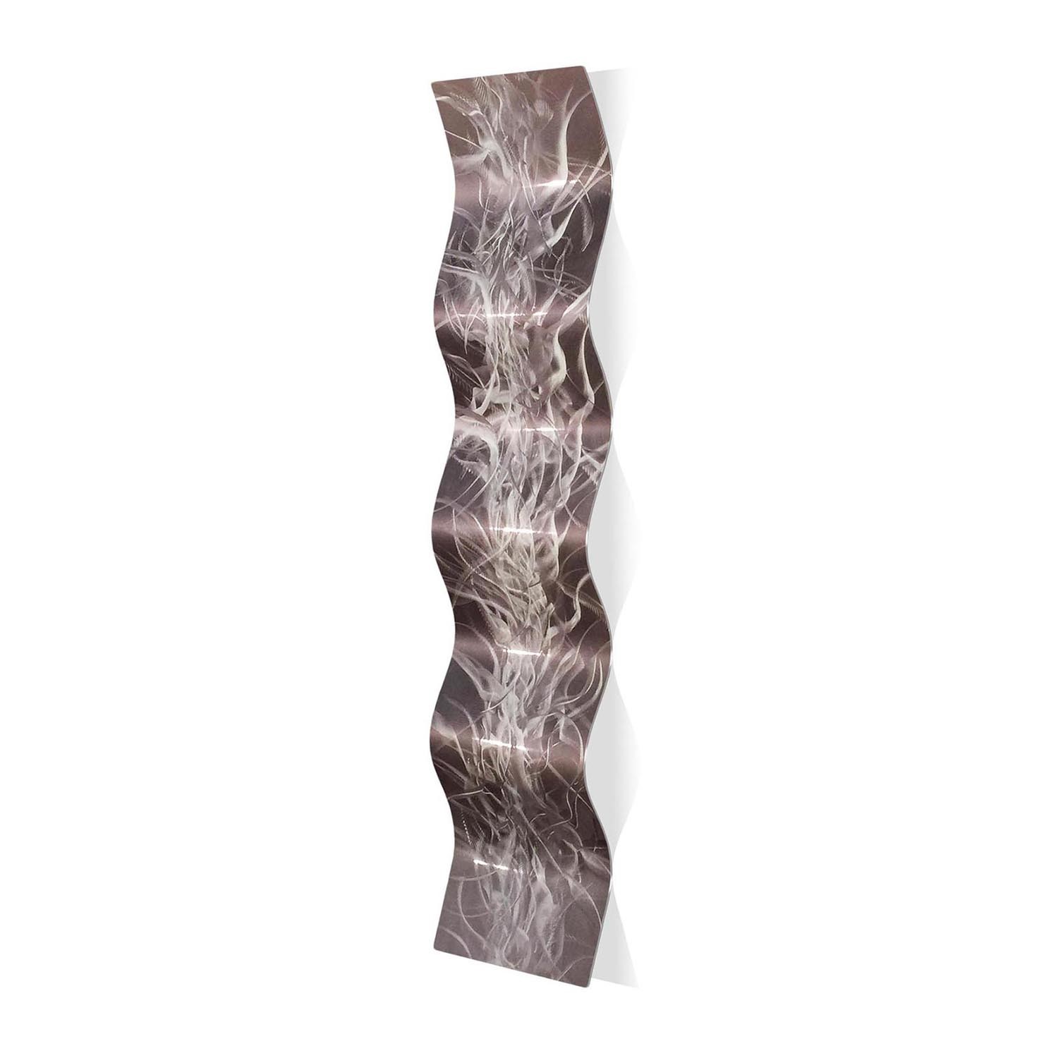 Electric Wave is a contemporary style wall sculpture, formed in soothing waves and crafted from high-grade, rust-proof aluminum for a lightweight body and indoor/outdoor versatility. This flowing accent piece ripples like a ribbon in motion, and features the brilliant work of artist Mendo Vasilevski applied directly to the metallic surface in crisp hues with an artistic matte finish. It is designed to be a unique, dimensional way of decorating with an eclectic focus. The industrial materials and durable finishes make this wavy metal art a popular choice for everything from upscale hotels to harmonious day spas to modern corporate offices. This curved abstract artwork is a creative addition to any interior style.