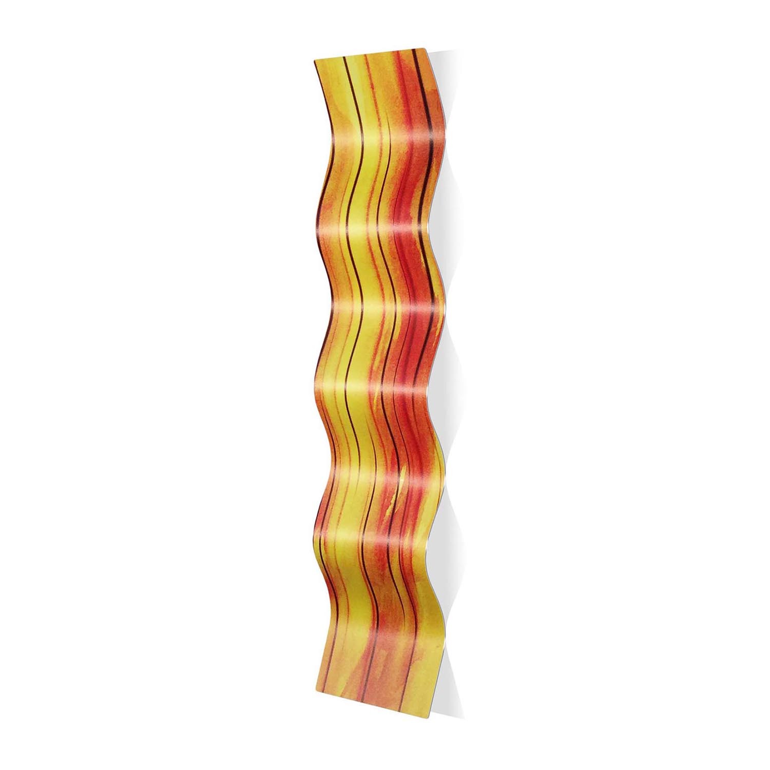 Heat Wave is a contemporary style wall sculpture, formed in soothing waves and crafted from high-grade, rust-proof aluminum for a lightweight body and indoor/outdoor versatility. This flowing accent piece ripples like a ribbon in motion, and features the brilliant work of artist Mendo Vasilevski applied directly to the metallic surface in crisp hues with an artistic matte finish. It is designed to be a unique, dimensional way of decorating with an eclectic focus. The industrial materials and durable finishes make this wavy metal art a popular choice for everything from upscale hotels to harmonious day spas to modern corporate offices. This curved abstract artwork is a creative addition to any interior style.