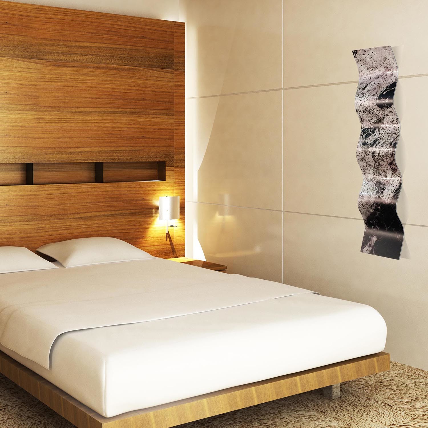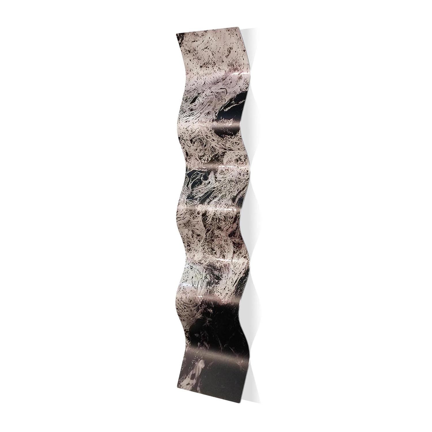 Storm Black Wave is a contemporary style wall sculpture, formed in soothing waves and crafted from high-grade, rust-proof aluminum for a lightweight body and indoor/outdoor versatility. This flowing accent piece ripples like a ribbon in motion, and features the brilliant work of artist Mendo Vasilevski applied directly to the metallic surface in crisp hues with an artistic matte finish. It is designed to be a unique, dimensional way of decorating with an eclectic focus. The industrial materials and durable finishes make this wavy metal art a popular choice for everything from upscale hotels to harmonious day spas to modern corporate offices. This curved abstract artwork is a creative addition to any interior style.