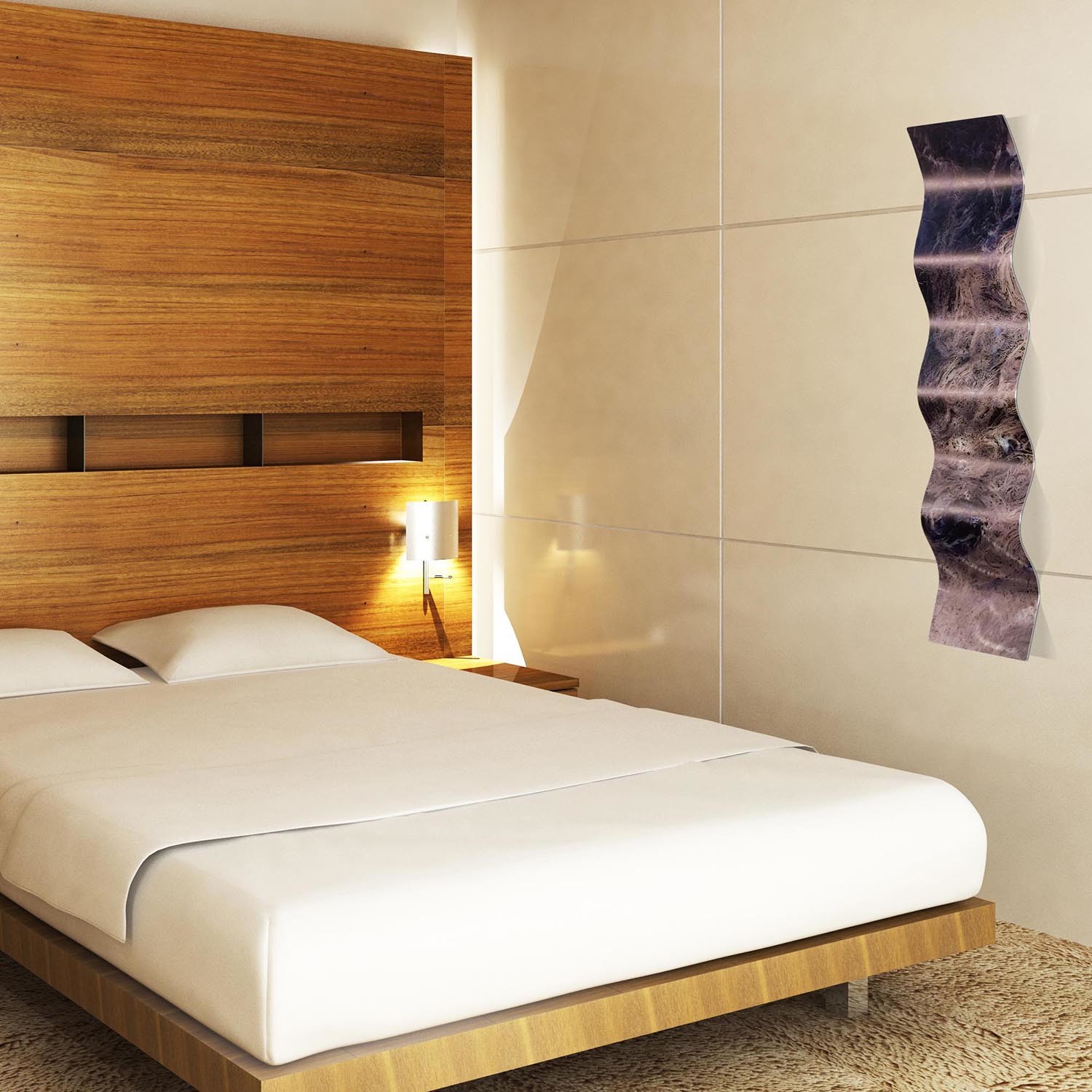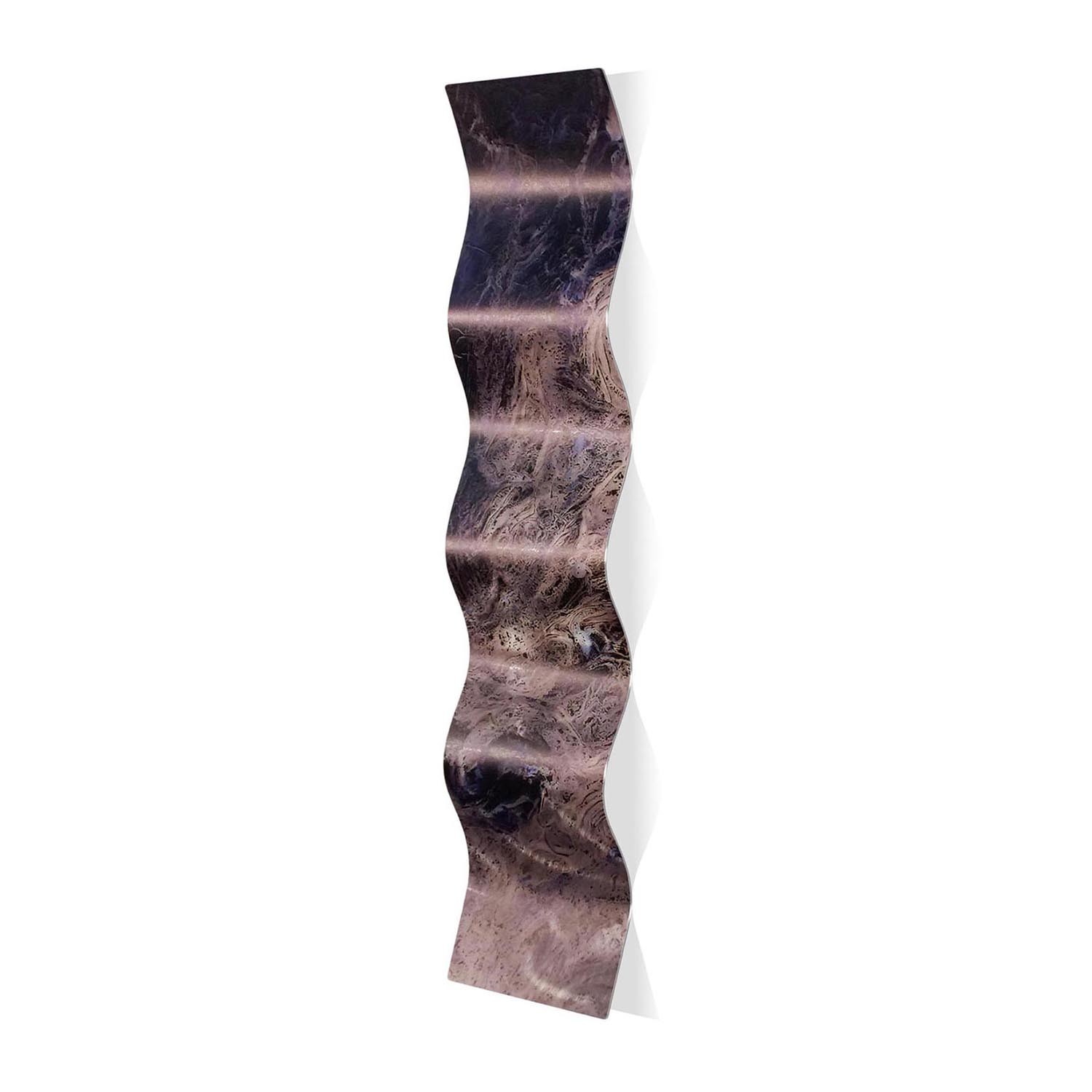 Storm Blue Wave is a contemporary style wall sculpture, formed in soothing waves and crafted from high-grade, rust-proof aluminum for a lightweight body and indoor/outdoor versatility. This flowing accent piece ripples like a ribbon in motion, and features the brilliant work of artist Mendo Vasilevski applied directly to the metallic surface in crisp hues with an artistic matte finish. It is designed to be a unique, dimensional way of decorating with an eclectic focus. The industrial materials and durable finishes make this wavy metal art a popular choice for everything from upscale hotels to harmonious day spas to modern corporate offices. This curved abstract artwork is a creative addition to any interior style.