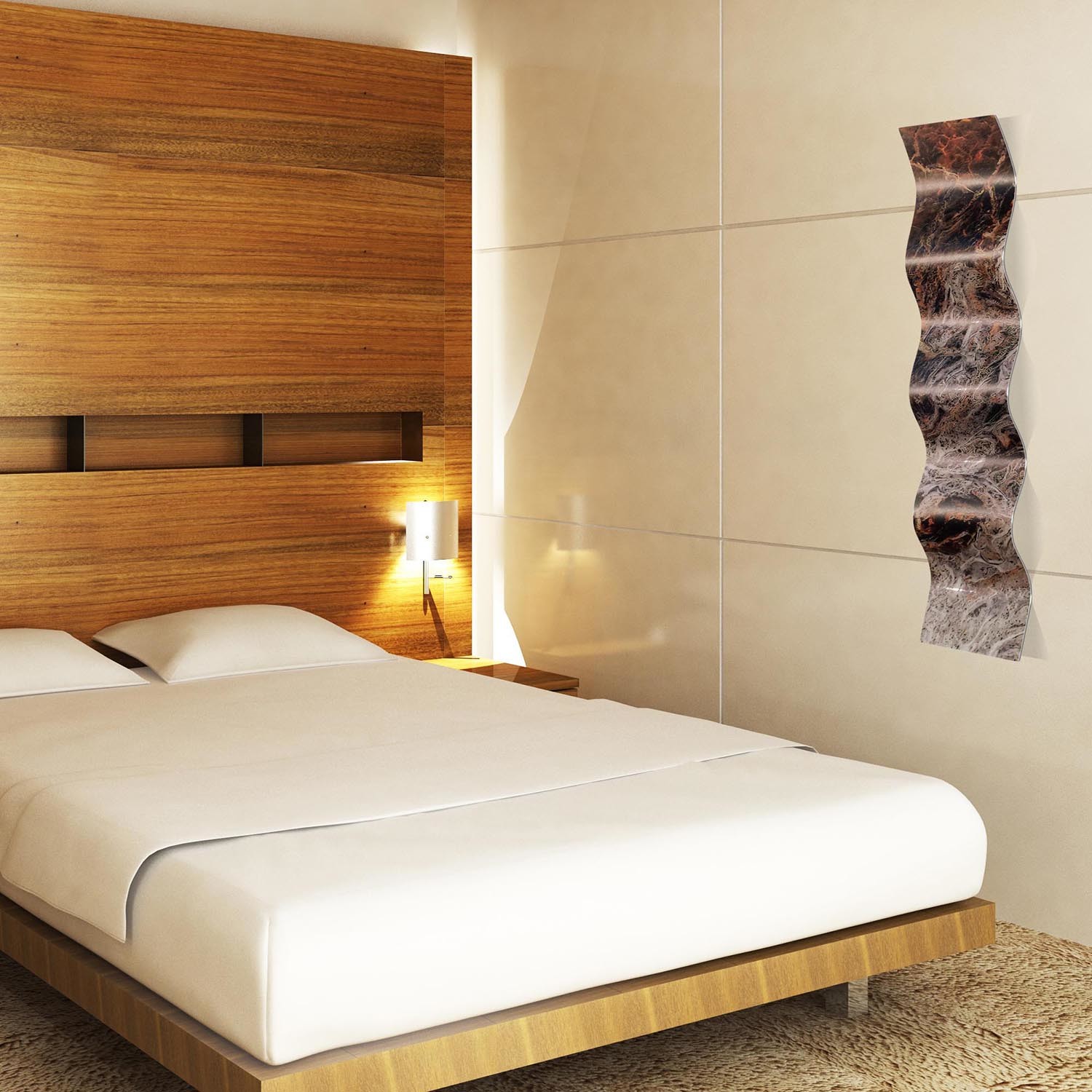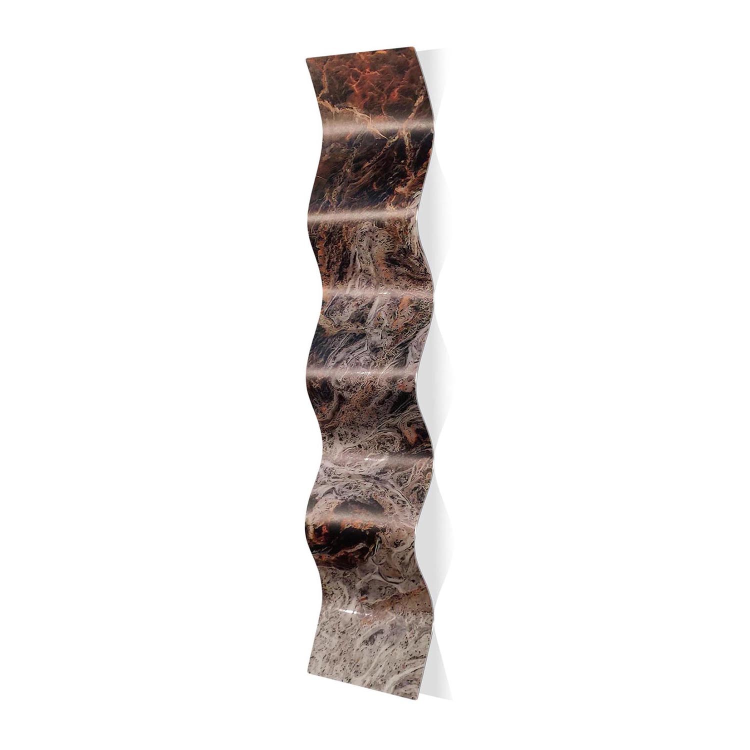 Storm Brown Wave is a contemporary style wall sculpture, formed in soothing waves and crafted from high-grade, rust-proof aluminum for a lightweight body and indoor/outdoor versatility. This flowing accent piece ripples like a ribbon in motion, and features the brilliant work of artist Mendo Vasilevski applied directly to the metallic surface in crisp hues with an artistic matte finish. It is designed to be a unique, dimensional way of decorating with an eclectic focus. The industrial materials and durable finishes make this wavy metal art a popular choice for everything from upscale hotels to harmonious day spas to modern corporate offices. This curved abstract artwork is a creative addition to any interior style.