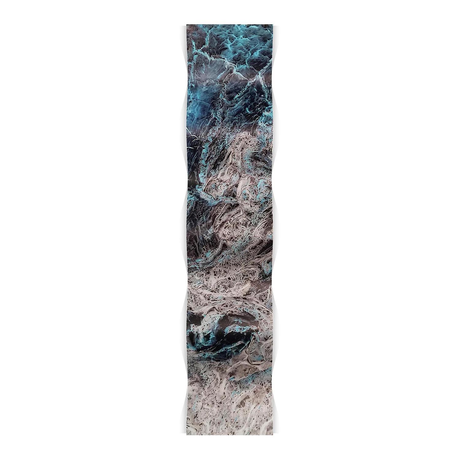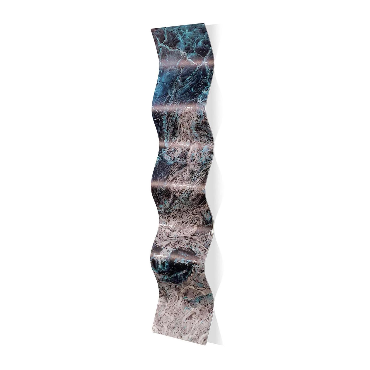 Storm Turquoise Wave is a contemporary style wall sculpture, formed in soothing waves and crafted from high-grade, rust-proof aluminum for a lightweight body and indoor/outdoor versatility. This flowing accent piece ripples like a ribbon in motion, and features the brilliant work of artist Mendo Vasilevski applied directly to the metallic surface in crisp hues with an artistic matte finish. It is designed to be a unique, dimensional way of decorating with an eclectic focus. The industrial materials and durable finishes make this wavy metal art a popular choice for everything from upscale hotels to harmonious day spas to modern corporate offices. This curved abstract artwork is a creative addition to any interior style.