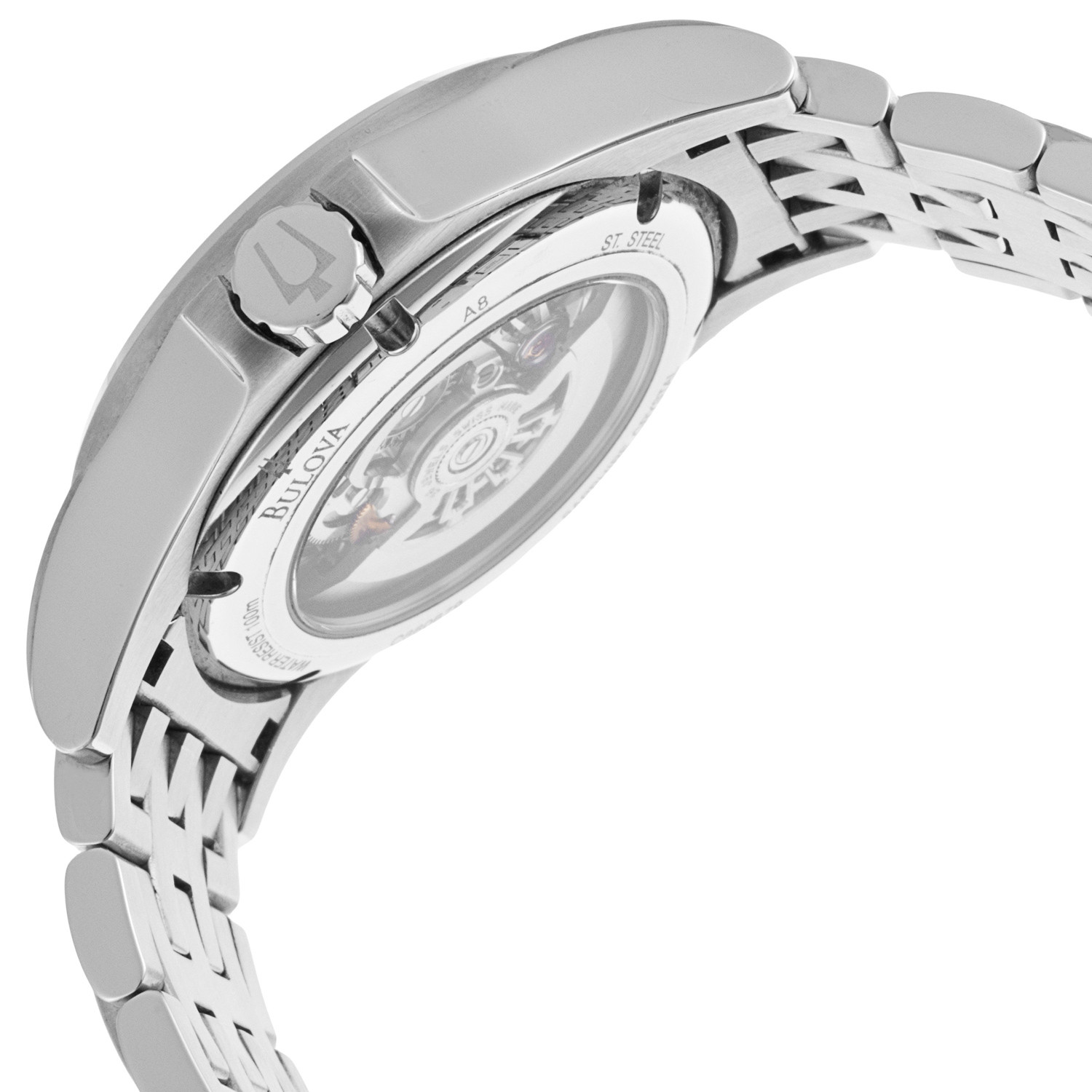 You'll want to put the Gemini Automatic Skeletonized Dial watch on right away. An impossibly gleaming case in stainless steel in silver tone reflects the light of the world on your wrist, making it self-illuminating and eye-catching. The time-tested Bulova Accutron quality only adds to its appeal.