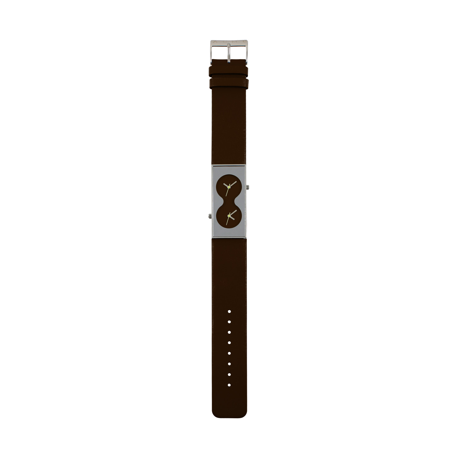 This stunning two-timer is in the Permanent Collection of the Museum of Decorative Arts in Frankfurt, Germany. It features a stainless steel case, quartz movement, and a leather strap. You'll love being asked the time with this wristlet.