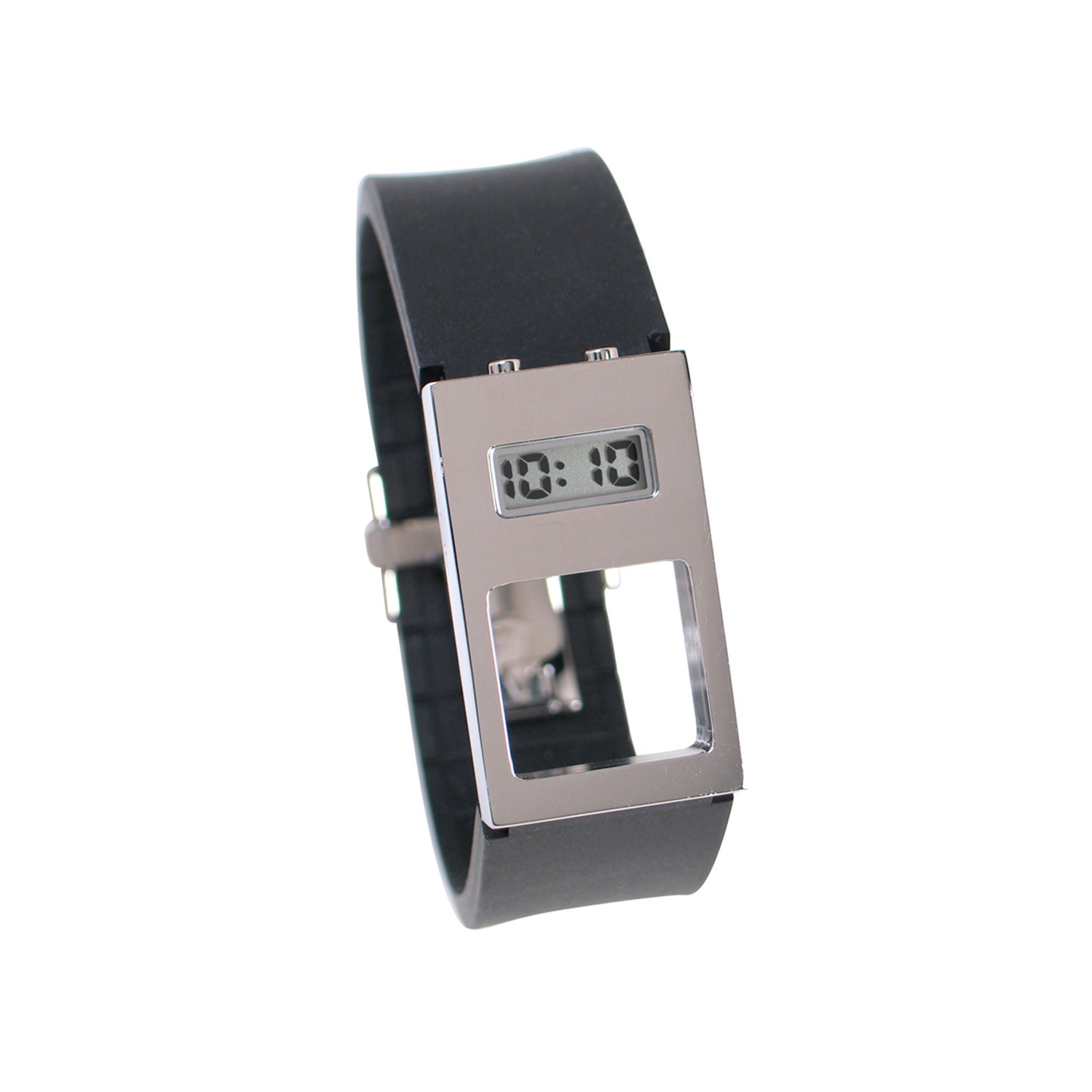 Finestra means window in Italian and this watch has an open silhouette with a cut-out that shows off your smooth skin. This durable everyday watch is digital with a stainless steel case, mineral crystal dial, and butterfly clasp closure.