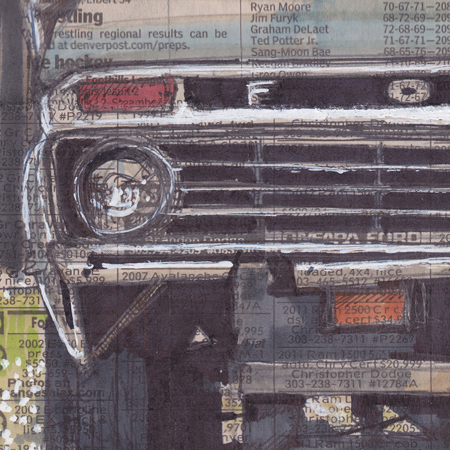 Having grown up in Michigan in a three-bedroom house with a five-car garage, it’s only natural that Adam Ambro's eye gravitates towards the auto industry for inspiration – for both the subjects and the classified ads that served as the original canvases.