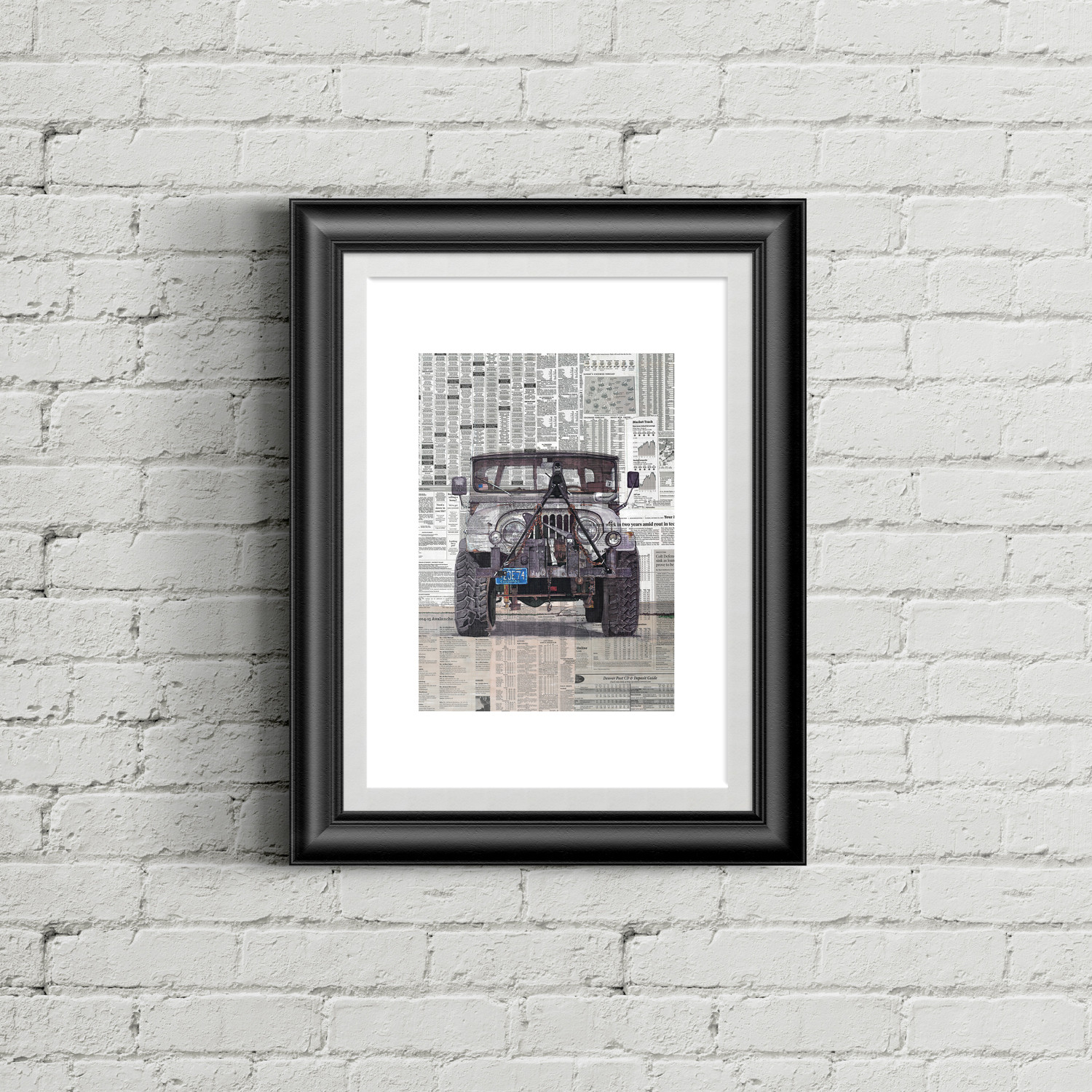 Inspired by the urban landscape, Adam Ambro’s work looks to find beauty in less than obvious places. Beginning with a recycled canvas of newspaper, Jeep #1 is a poster print of an original combination of pen, marker and whatever else happened to be within arm’s reach. The end result is a highly textured, imperfect interpretation of the man-made environment. This high quality poster print comes with a matte border for easy framing of this automotive art.