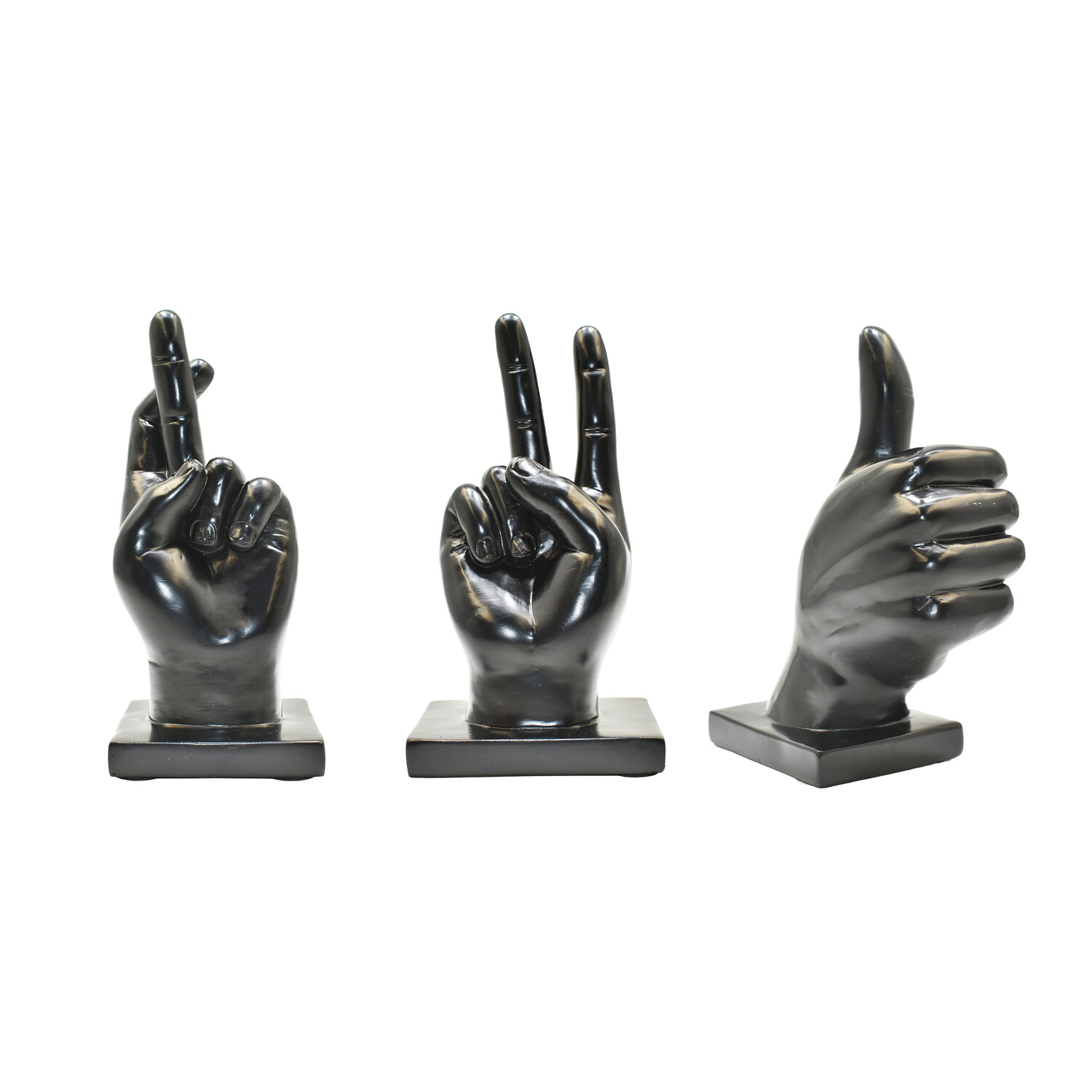 Adam & Friends Fingers Crossed, Peace Sign, Thumbs Up Sculpture // Black