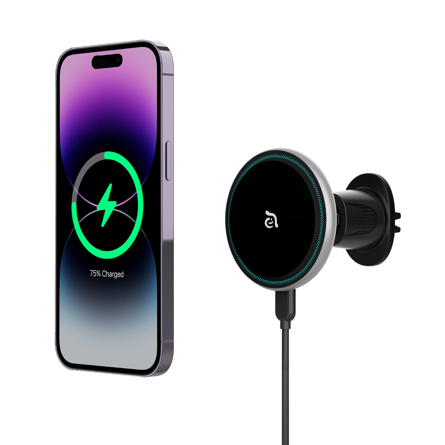 Keep your iPhone at full power and in-view while you drive with the OMNIA CX2 MagSafe Car Mount. Seamlessly designed for all MagSafe iPhones (12/13/14), this secure magnetic mount provides up to 15W fast charging and solid magnetic attachment. The compact design is low profile but super versatile—charge your phone horizontally, vertically, or at any desired angle. The built-in LED makes aligning your phone with the charger is effortless even at night. Compatible with most of the car air vents on the market, it holds firmly to the vent with the telescopic metal hook.