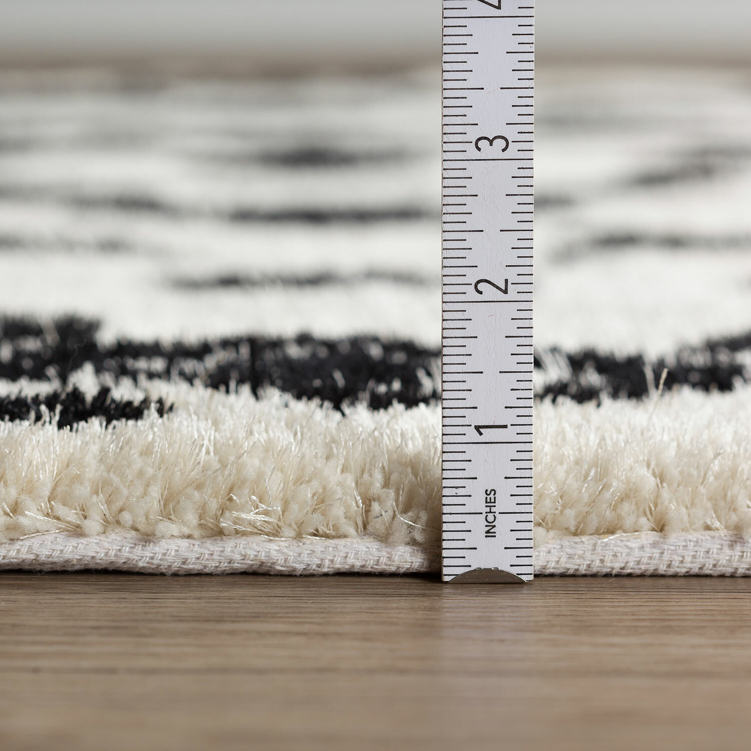 The Calabar collection from Addison rugs features over 3/4 inch of extremely soft plush pile shag with a blend of thick and thin yarn for added texture and drama. 100% Polyester shag with high shine accent design elements. These tufted area rugs have a supple underfoot comfort and great wear ability that will stand the test of time. Choose from three easy to place styles each available in four color ways. Perfect for any room and all family members. Vacuum regularly with straight suction only and spot clean. Never use a beater bar vacuum on a shag rug. Do not pull loose rug yarns; always trim with scissors.