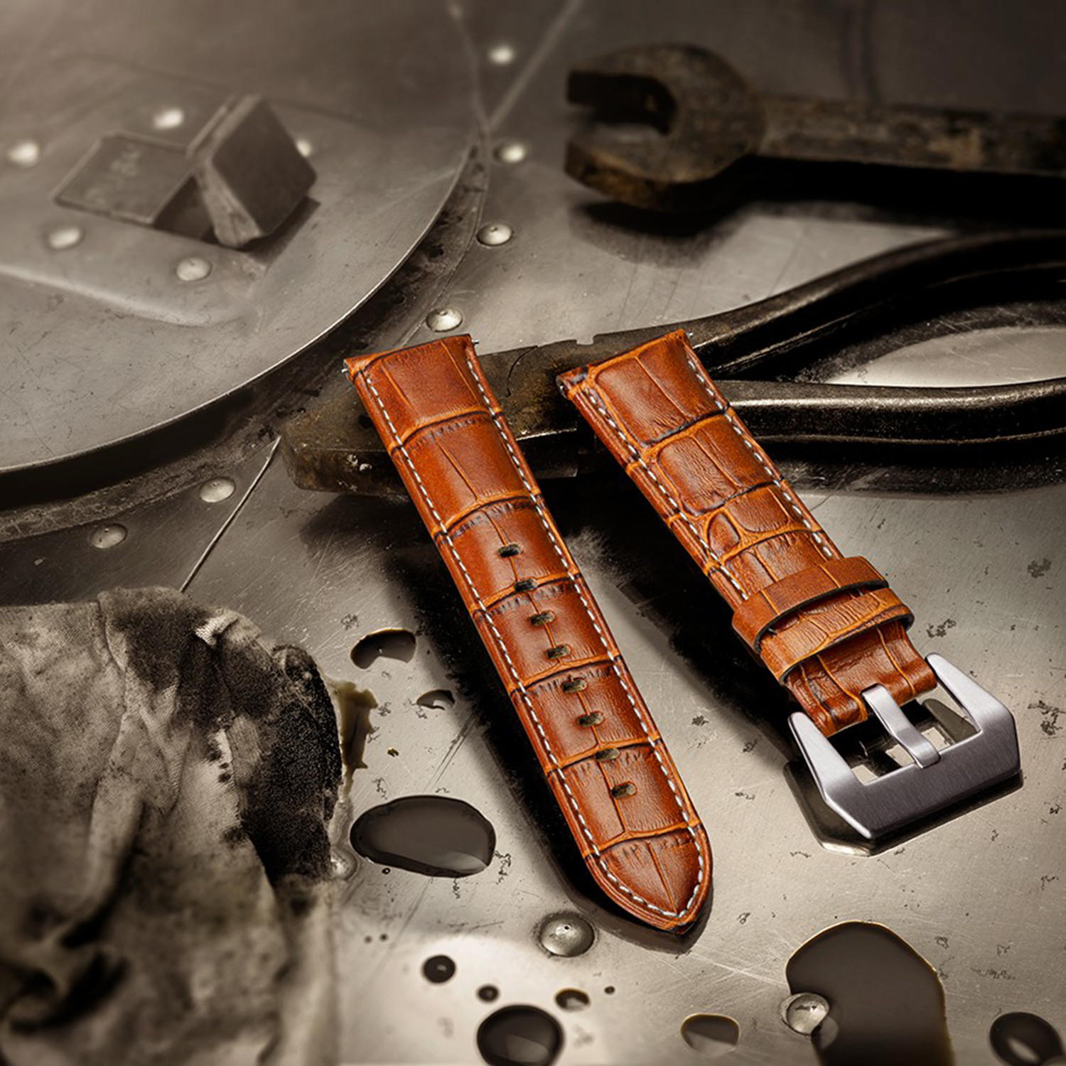 This Aeromeister Watch Strap is made from genuine leather with a large stainless steel buckle. This strap fits all Aeromeister models, and can be changed in 10 seconds because of the easy springbar, with no tools needed to easily update your look.