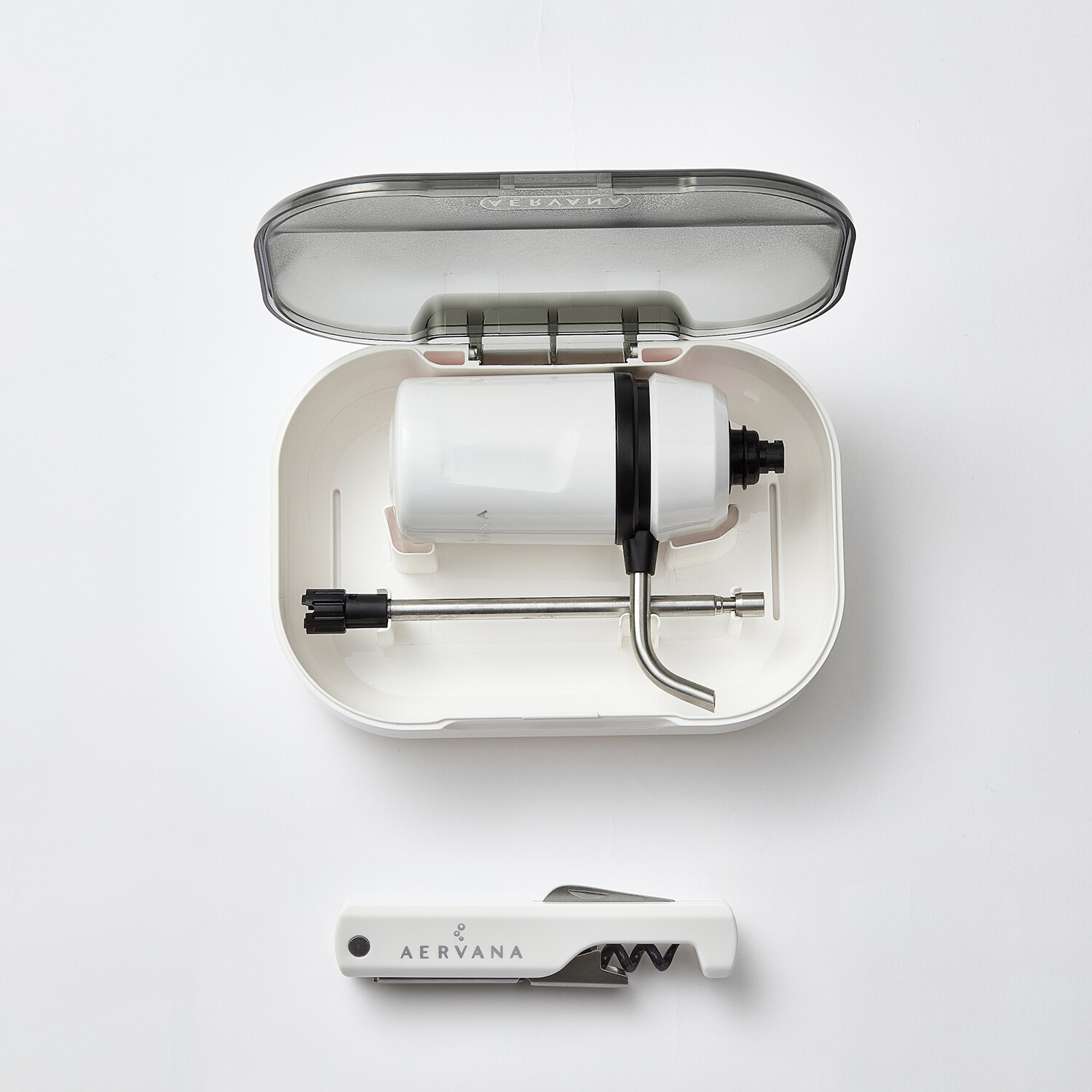 Aervana Travel is simple to use and convenient to bring along to your next dinner party, picnic, or barbecue. Just attach the single tube to the body of the aerator, slip the Aervana over an open wine bottle, and press the button on top. This complete set also includes a waiter's corkscrew and a convenient carrying case that keeps it all neat and safe wherever you go.