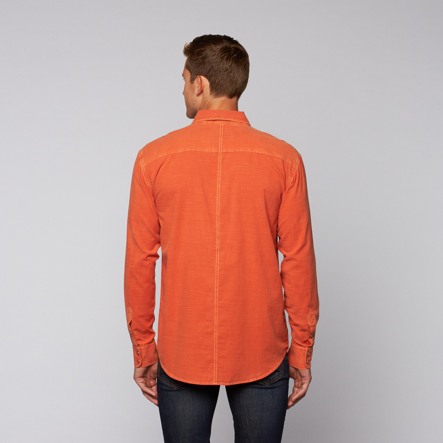 This Solid Button Up synthesizes classic tailoring and Western-style detailing. Made with contrast stitching and pearlescent buttons to emphasize its linear construction, you can wear this short around town with pride.