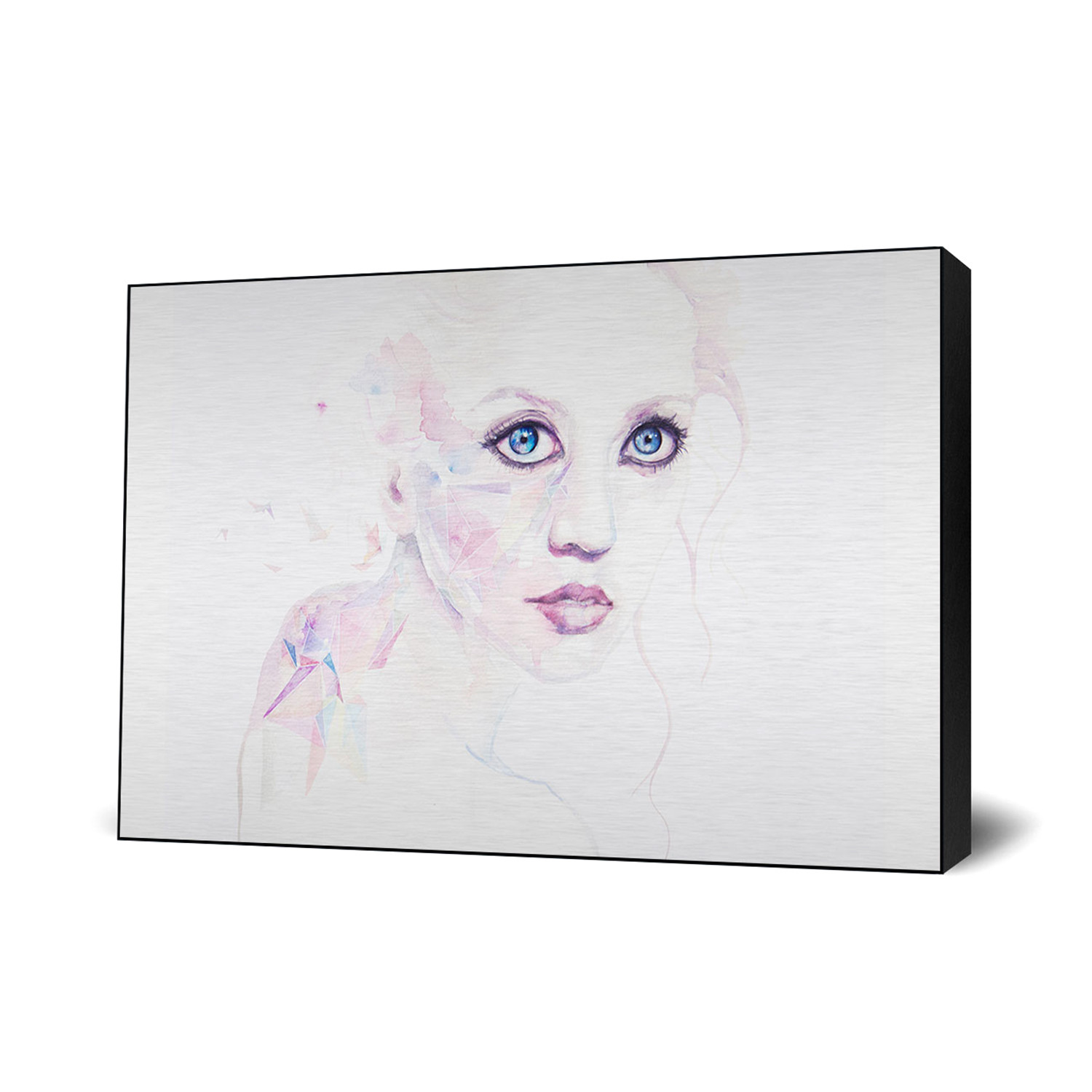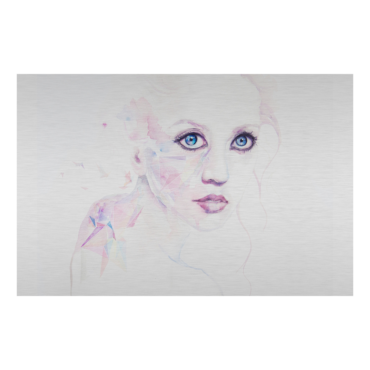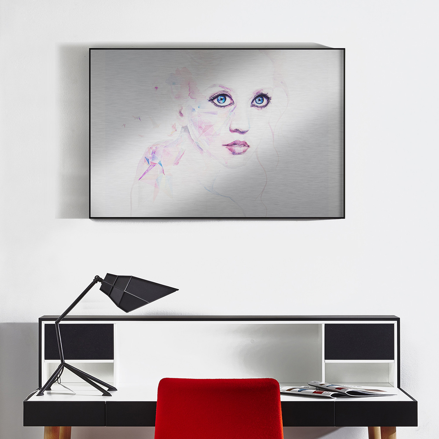 This striking, abstract metal print features an intriguing human face, and makes a dramatic addition to any space