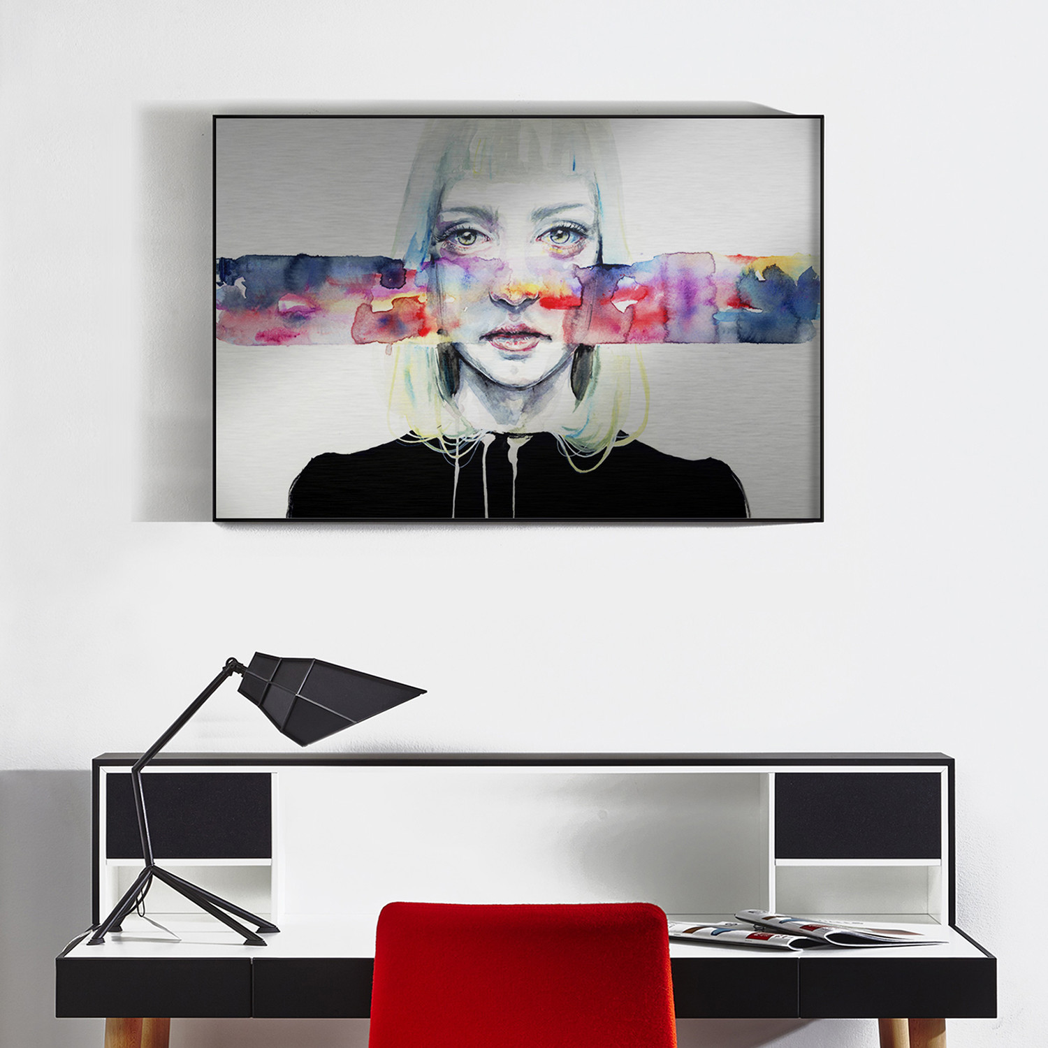 This striking, abstract metal print features an intriguing human form, and makes a dramatic addition to any space.