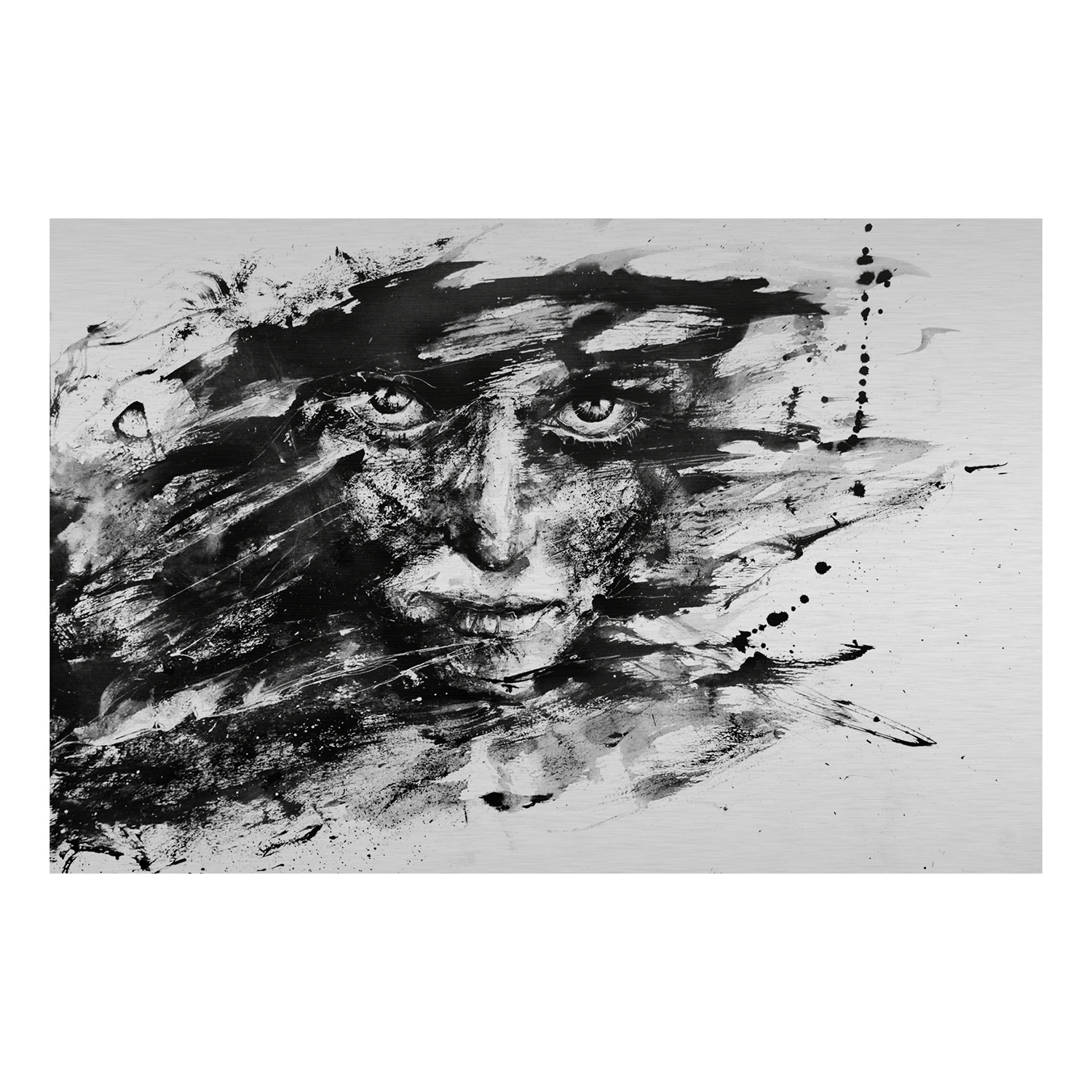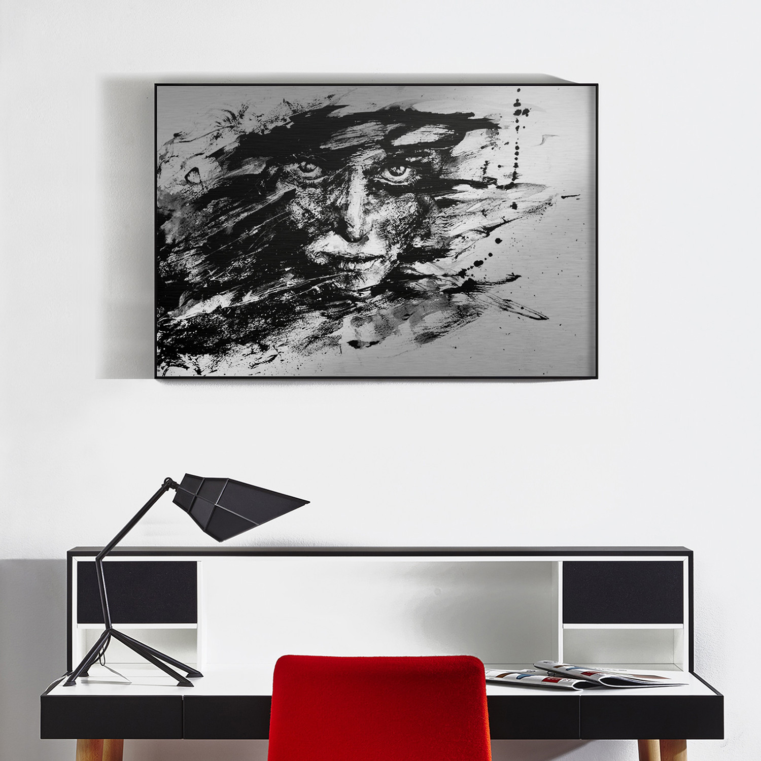 This striking, abstract metal print features an intriguing human form, and makes a dramatic addition to any space.