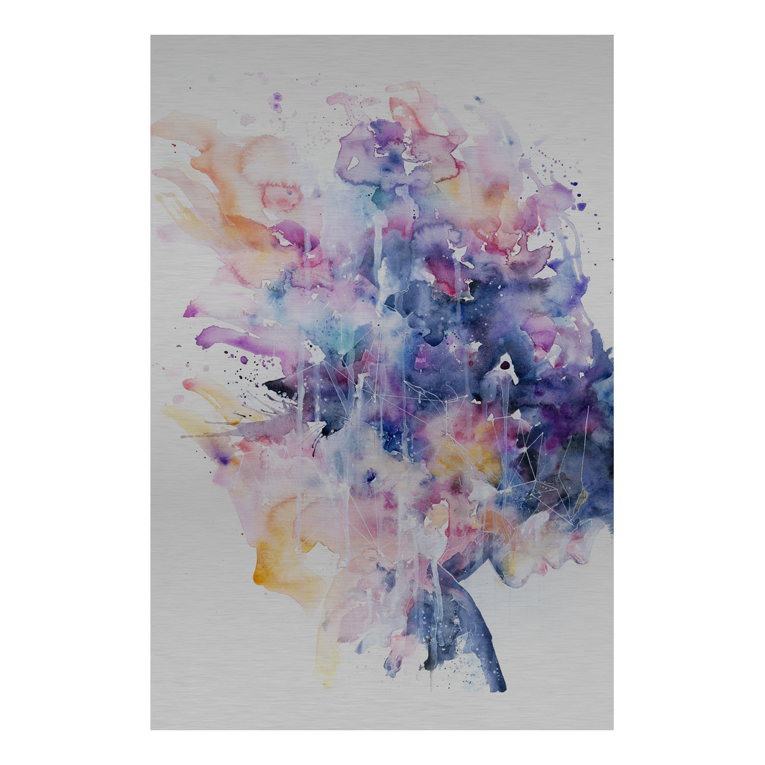 This striking, abstract metal print features a whimsical, colorful design, and makes a dramatic addition to any space.