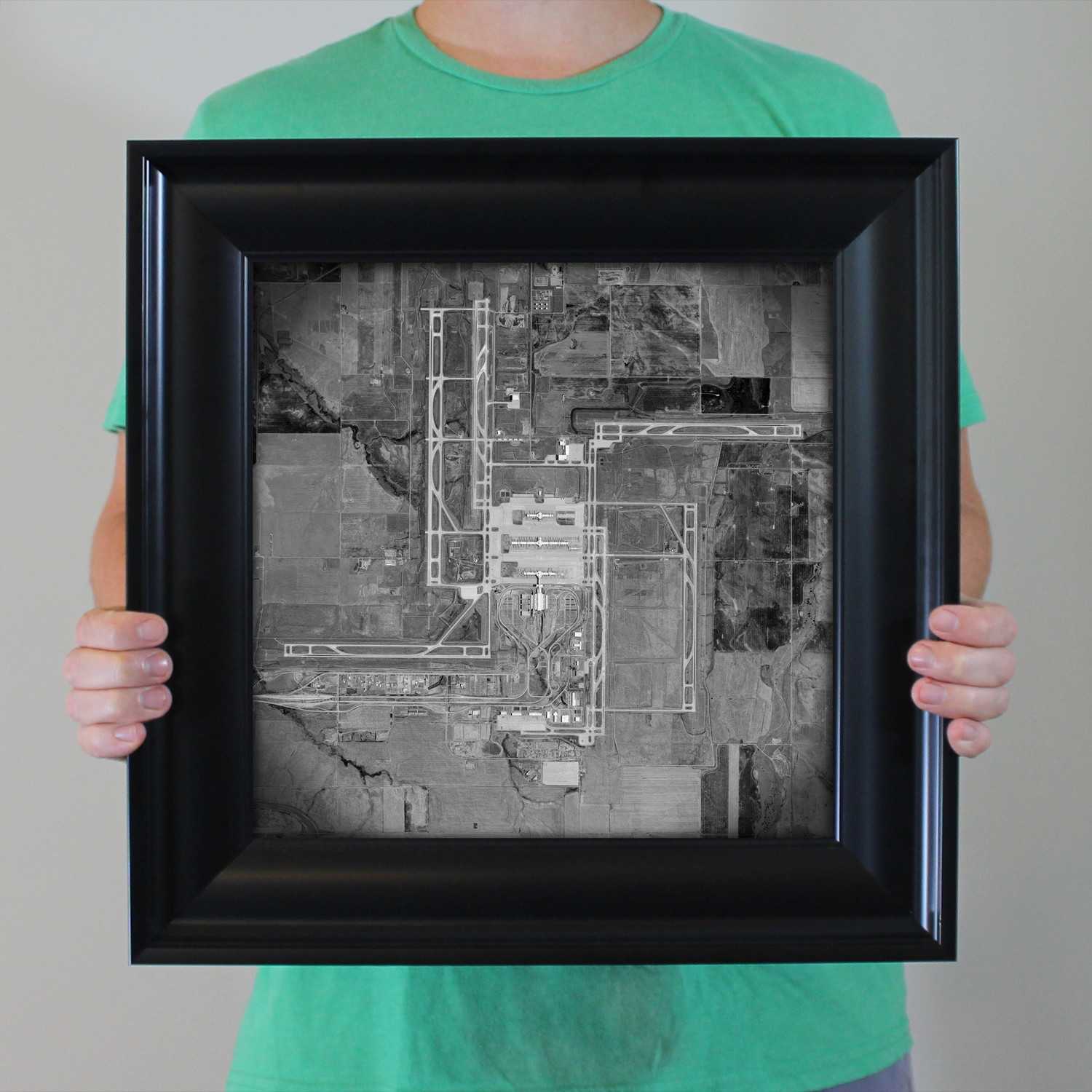 Inspire wanderlust and appreciate incredible architecture with this satellite image of the Denver International Airport. With understated colors and a more unique look than traditional photography, it's the perfect detail for any empty wall space.