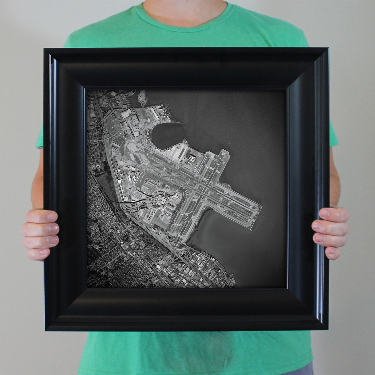 Inspire wanderlust and appreciate incredible architecture with this satellite image of San Francisco International Airport. With understated colors and a more unique look than traditional photography, it's the perfect detail for any empty wall space.