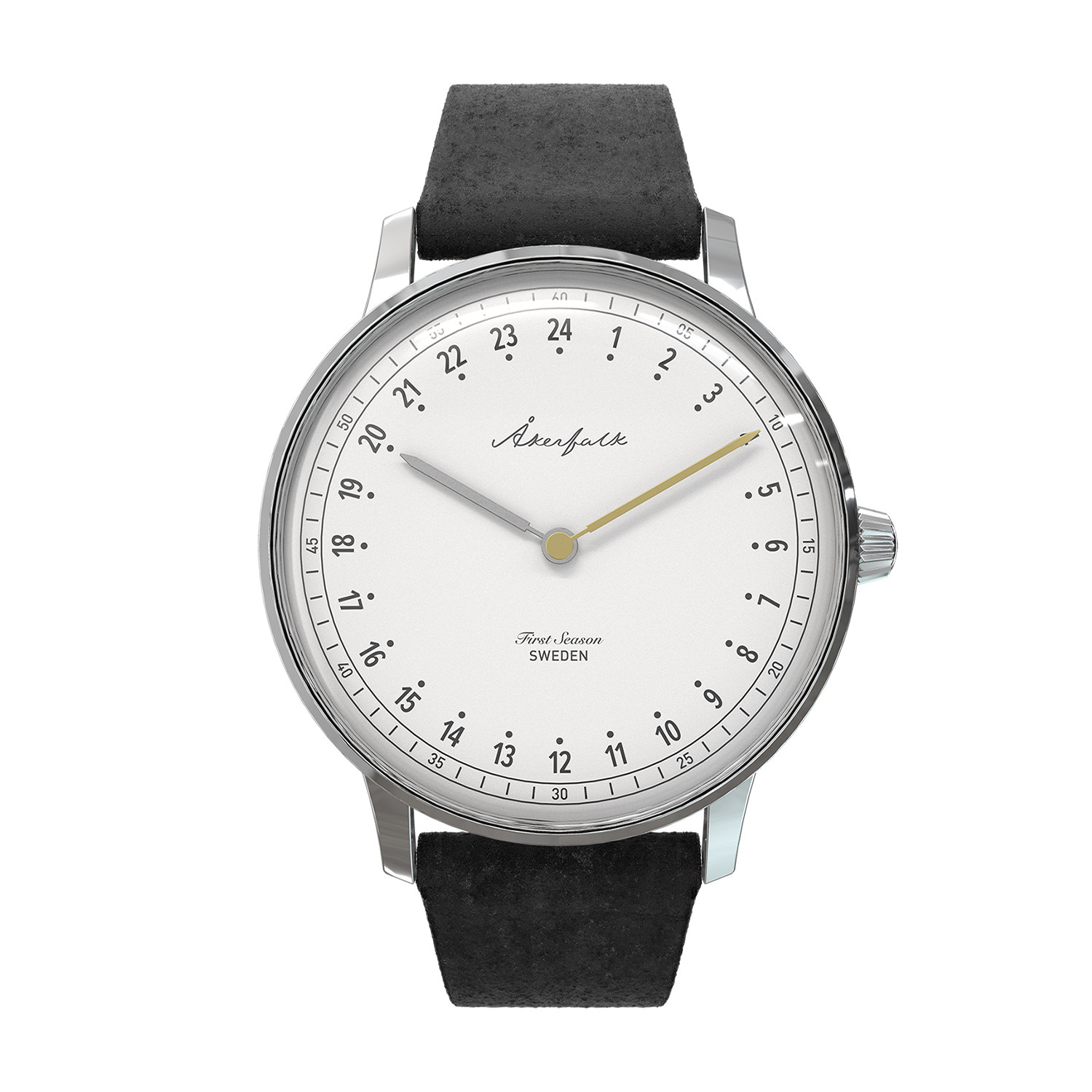With a chic, retro 60s aesthetic, the Akerfalk First Season Quartz is already a head-turner. But look closer and you'll notice that the watch also features a unique 24-hour Ronda quartz movement with a 24-hour dial. It's the perfect combination of heritage style, bold precision, and a touch of whimsy.