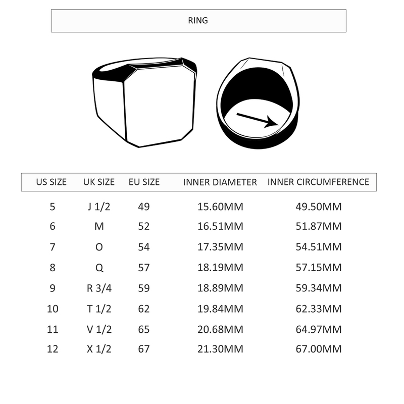 The size displayed in the size chart is the inner circumference of the ring and you should pick a size that's a little bit bigger than the measured circumference of your finger.