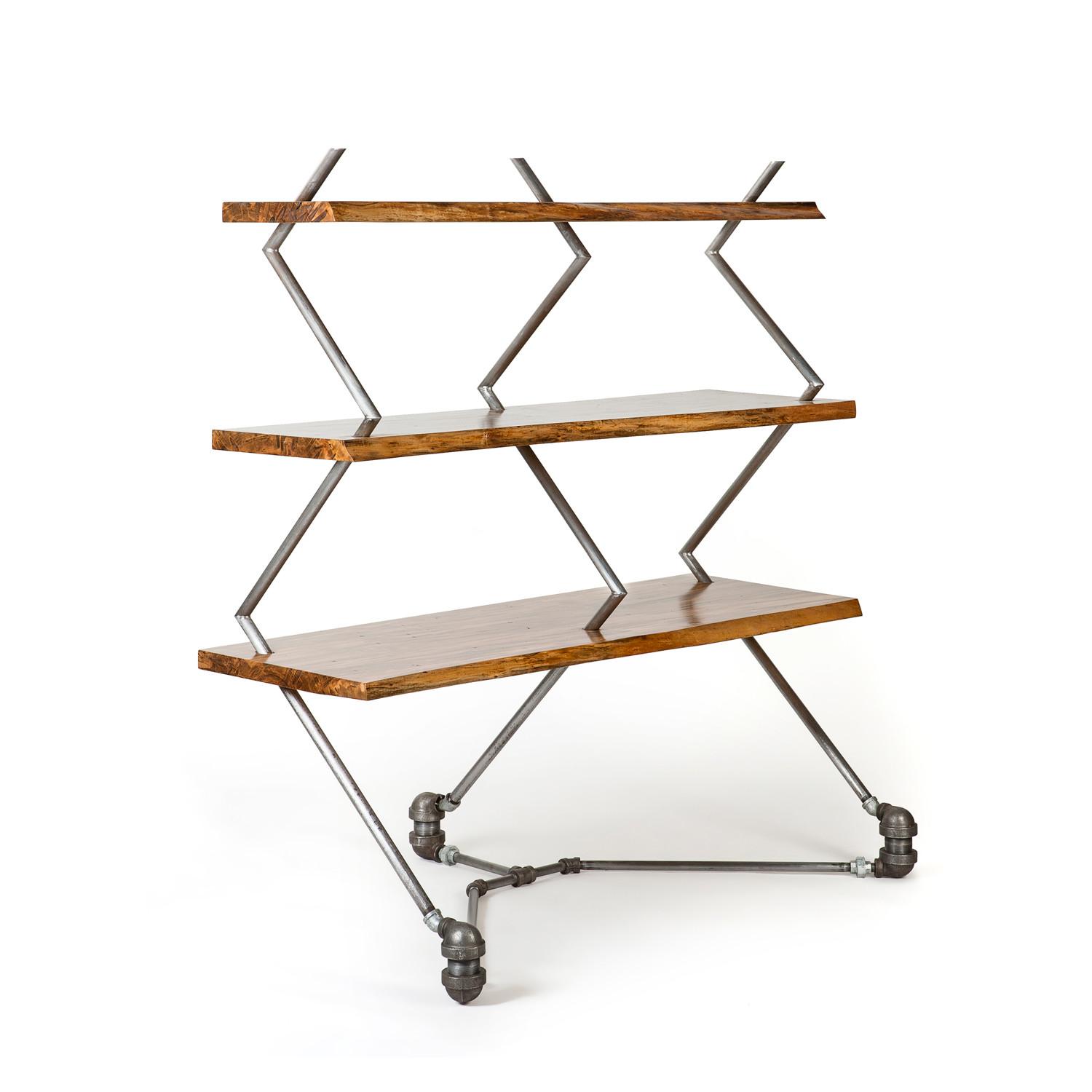 Oiled Wormy Maple, Brushed Reclaimed Steel Plumbing Pipes, Reclaimed Plumbing Fittings, Solder