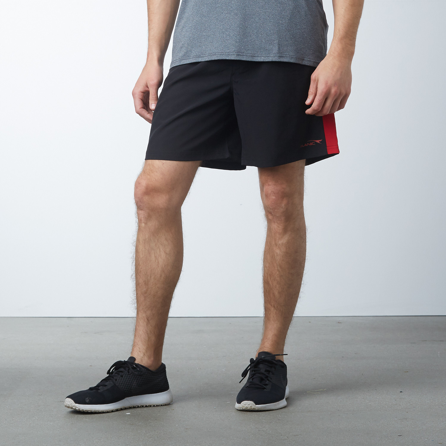 Black & Red acented shorts in lightweight fabric with soft built in liner. Featured in Black/ Red.