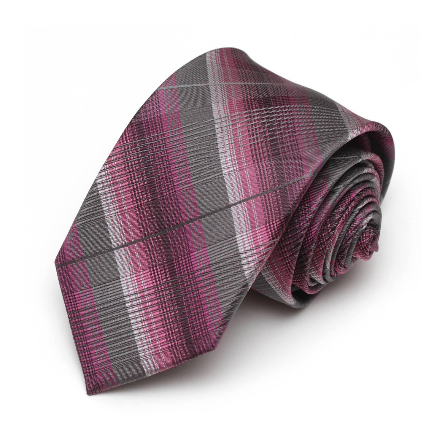 Silk Narrow Width Tie // Grey + Pink Diagonal Plaid
