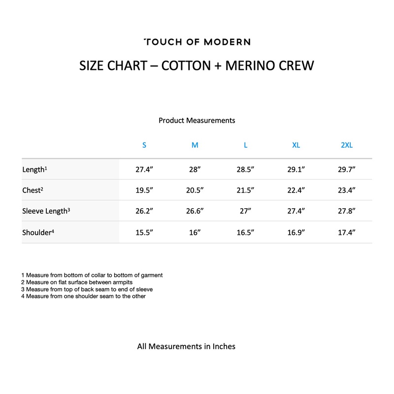 The 12 gauge Cotton + Merino Crew and its super soft blended knit makes this pullover a great mid-layer for changeable weather.