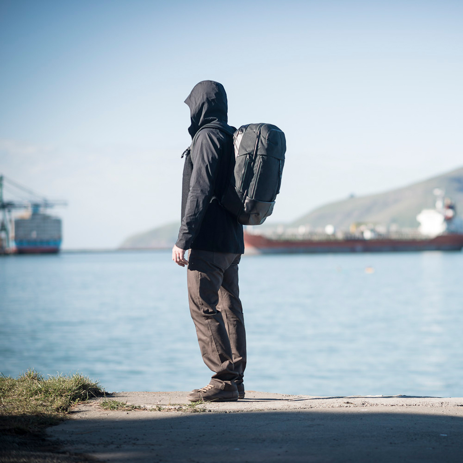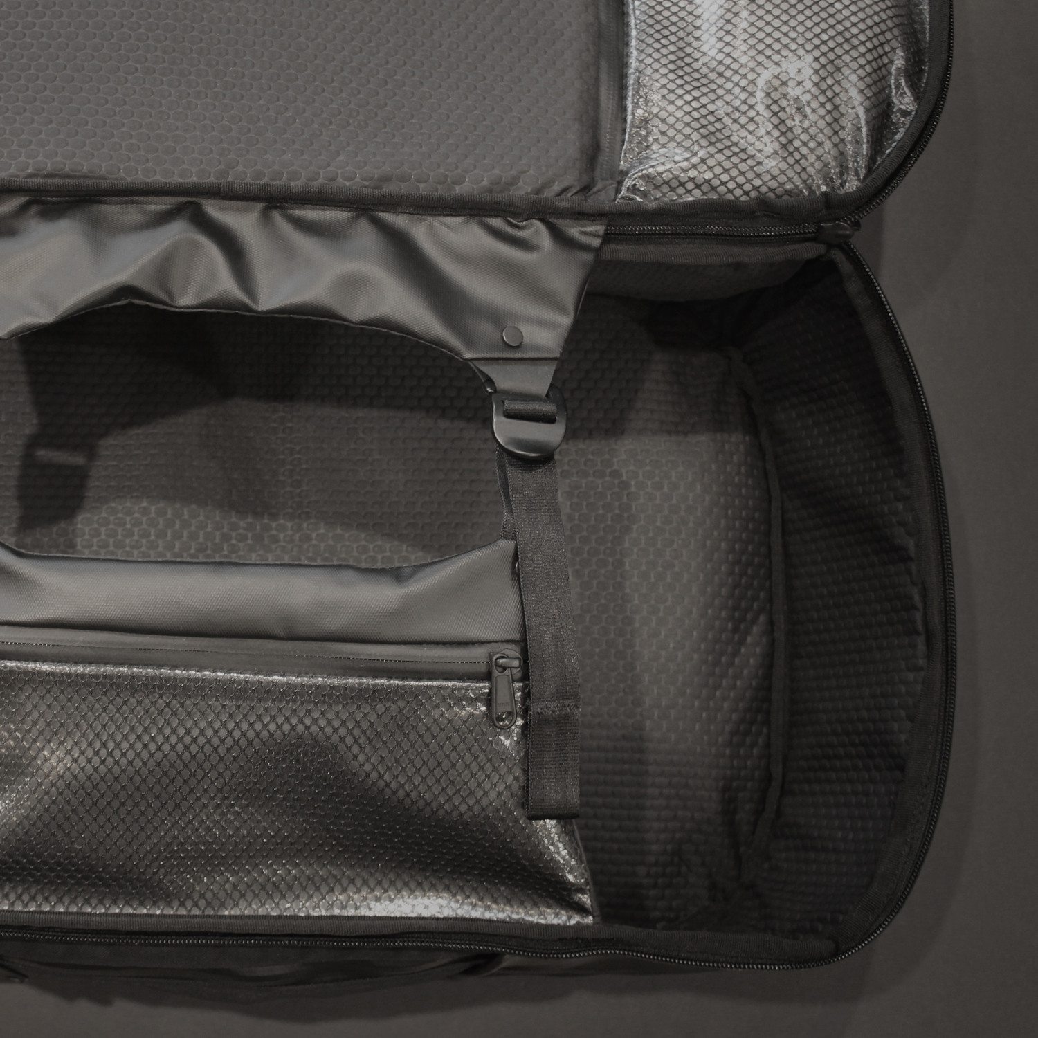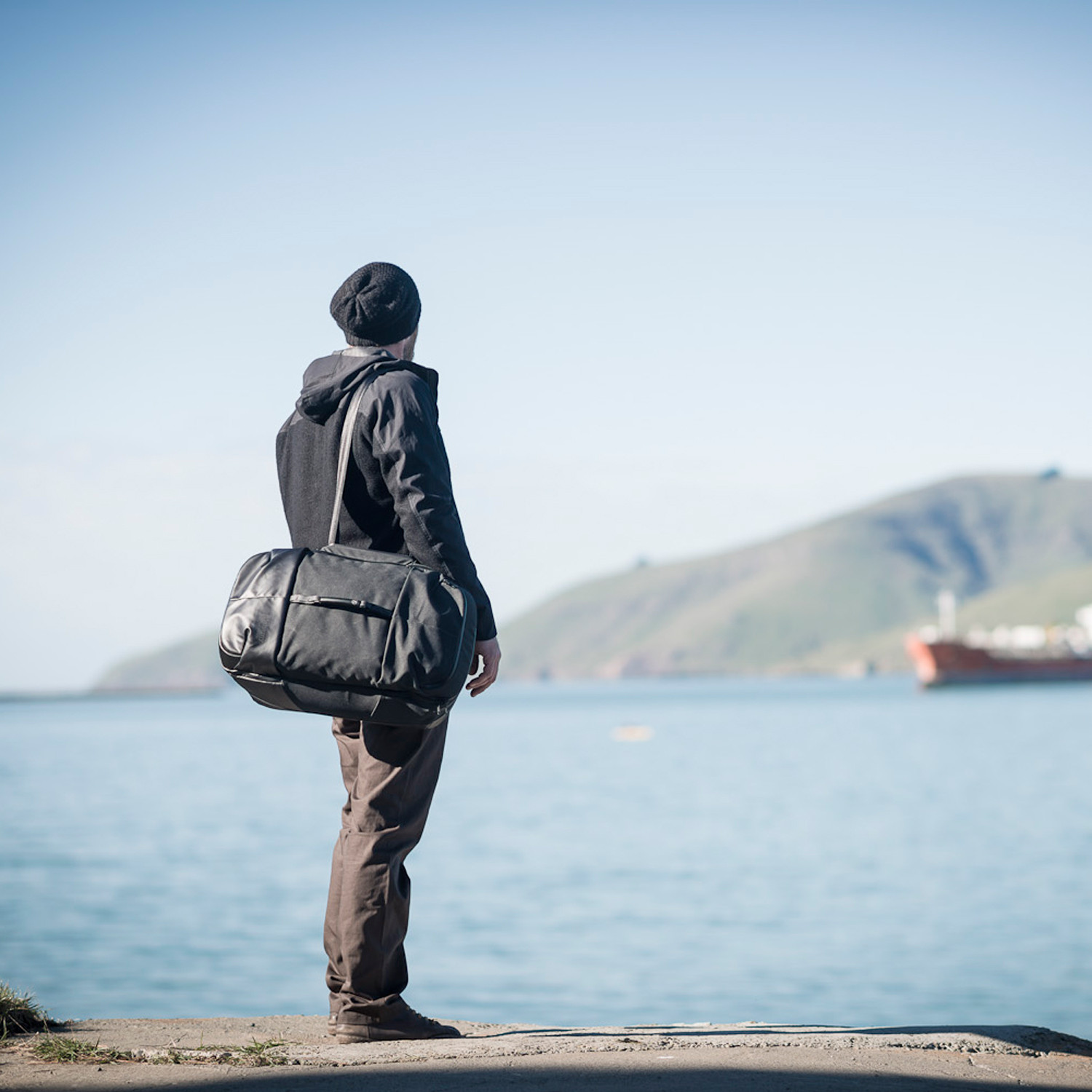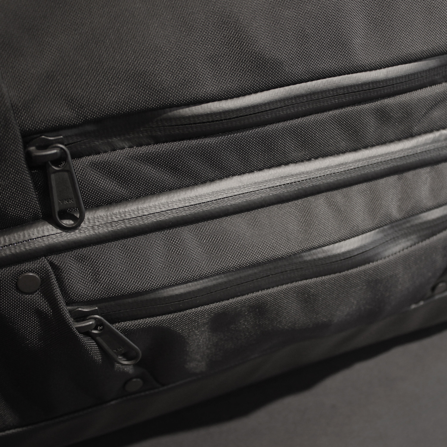 Designed to comply with the International Aviation Transport Association's guidelines for ‘carry on’ dimensions, this is a beautifully appointed and versatile piece of luggage. The YKK AquaGuard zip allows AEL008 to open fully, like a suitcase, for easy access to the main section and to the separate water-resistant compartment. The upper section accommodates up to 15" laptops in a padded sleeve with a nifty ejection mechanism. Carry options change quickly from duffel bag, to shoulder bag — or you can use it as a backpack.