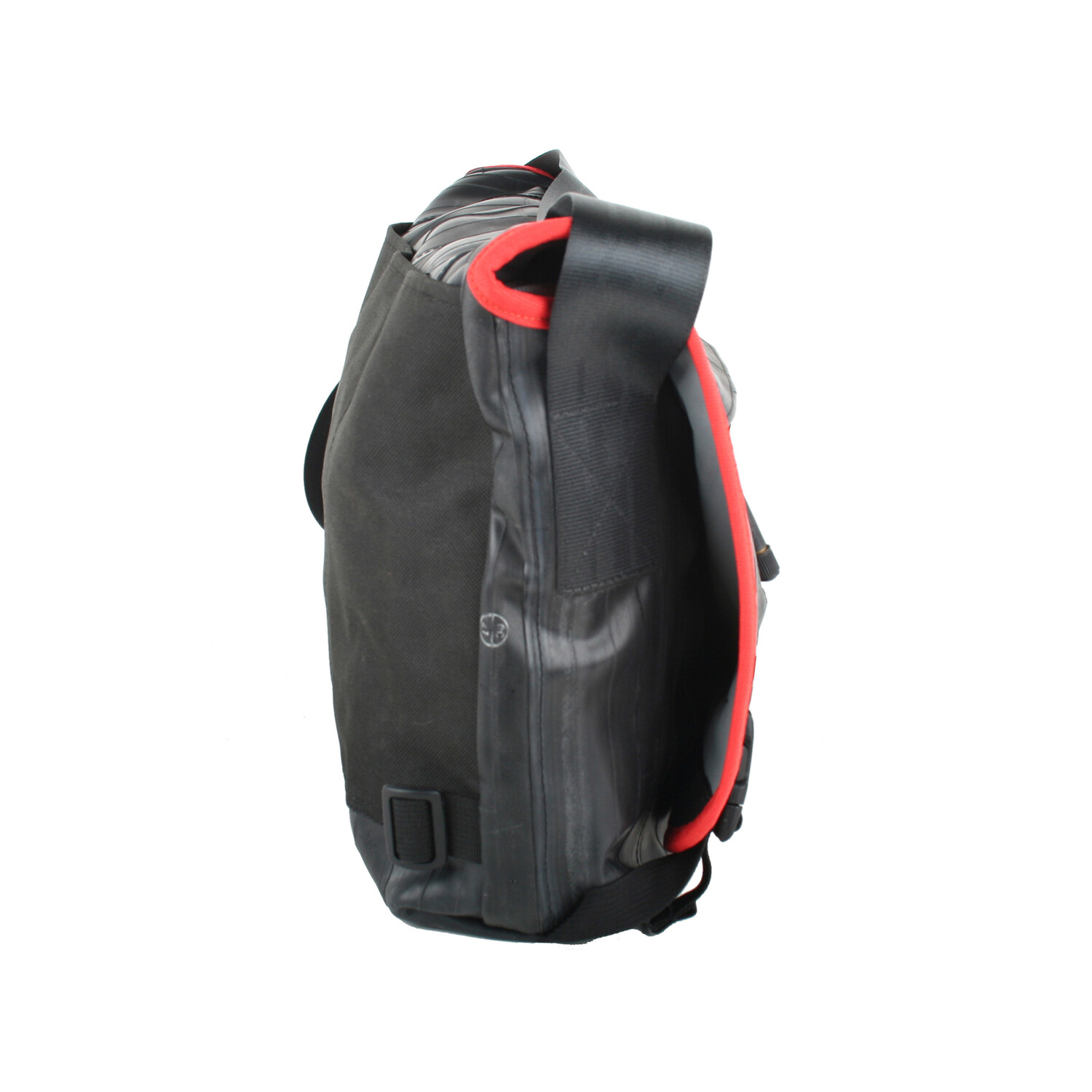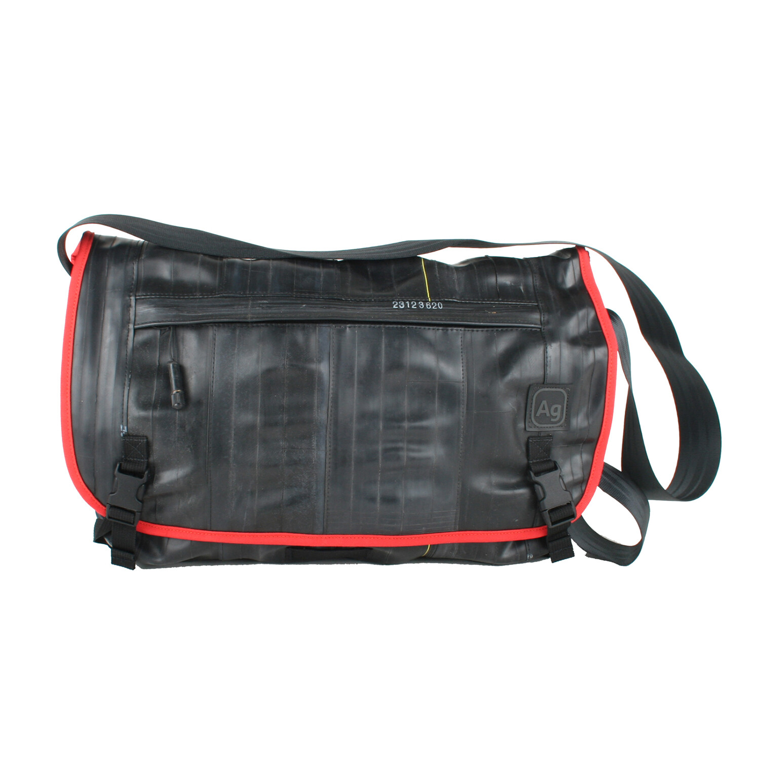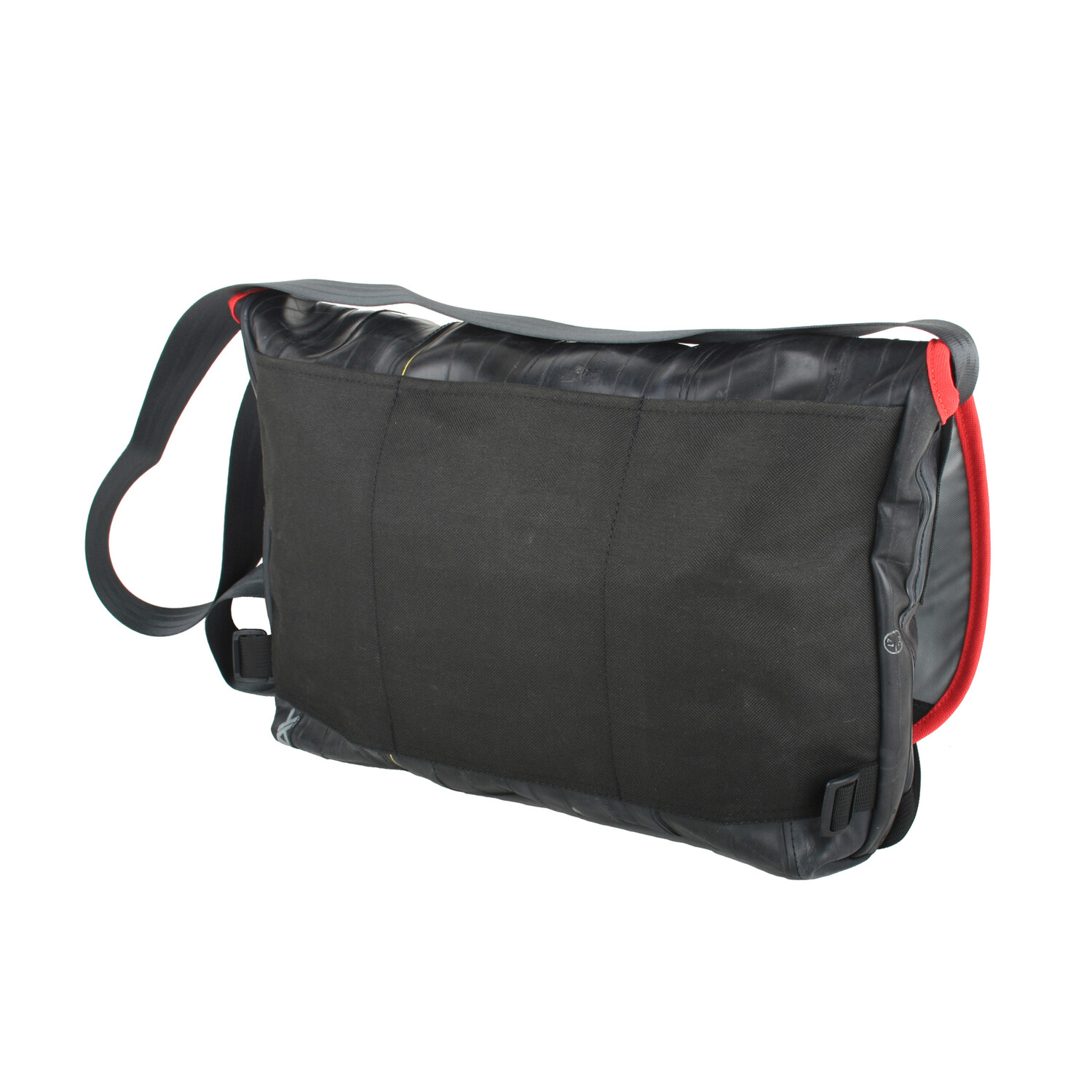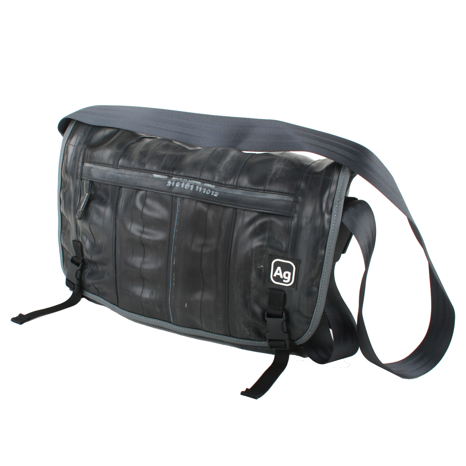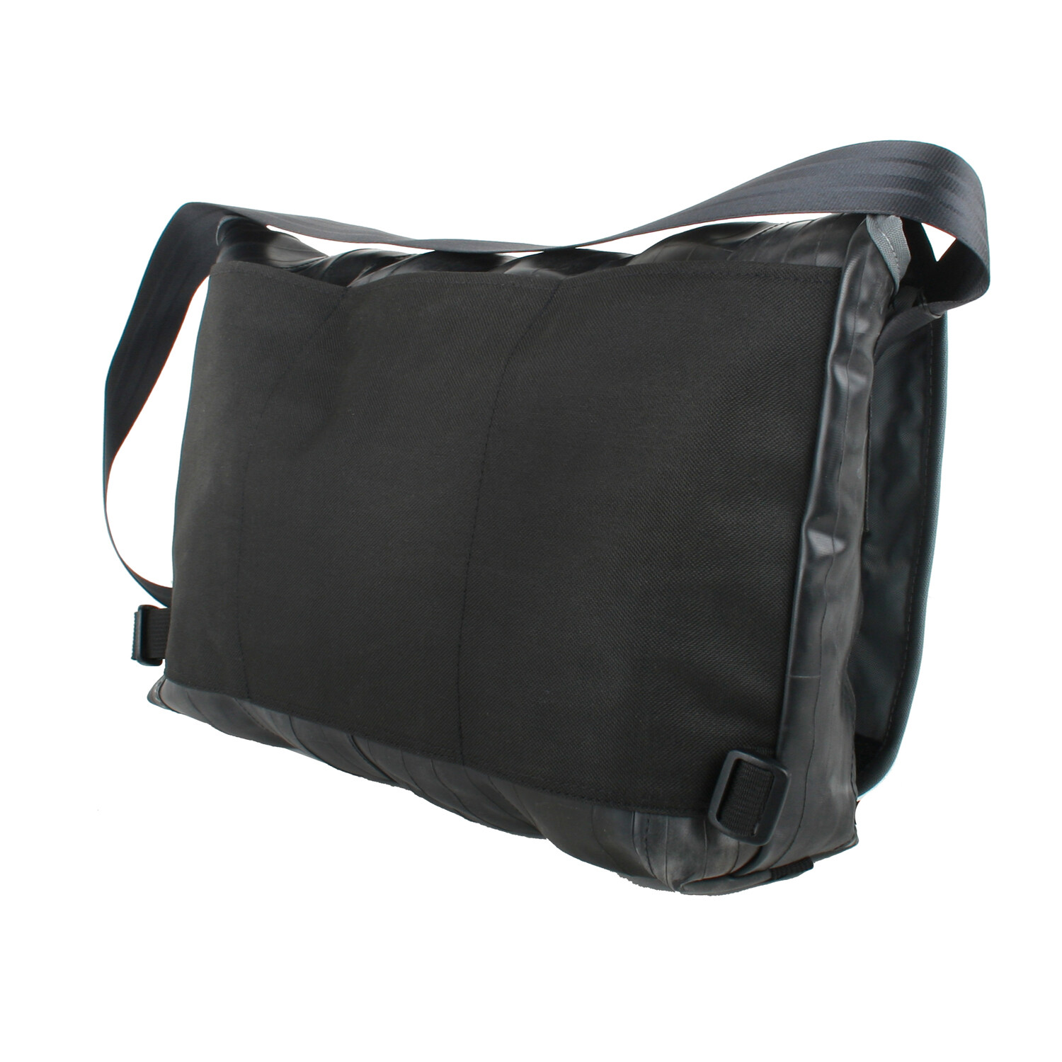 The Pike Messenger Bag retains most of the features of our other recycled messenger styles but is streamlined for smaller loads. A separate compartment for files, a notebook, or a laptop computer helps keep you organized at the coffee shop or office. A zippered exterior pocket conveniently holds your phone.